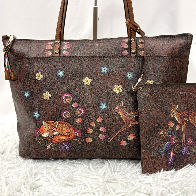 ETRO イタリア製 キツネ×バンビ ペイズリー ポーチ付きトートバッグ