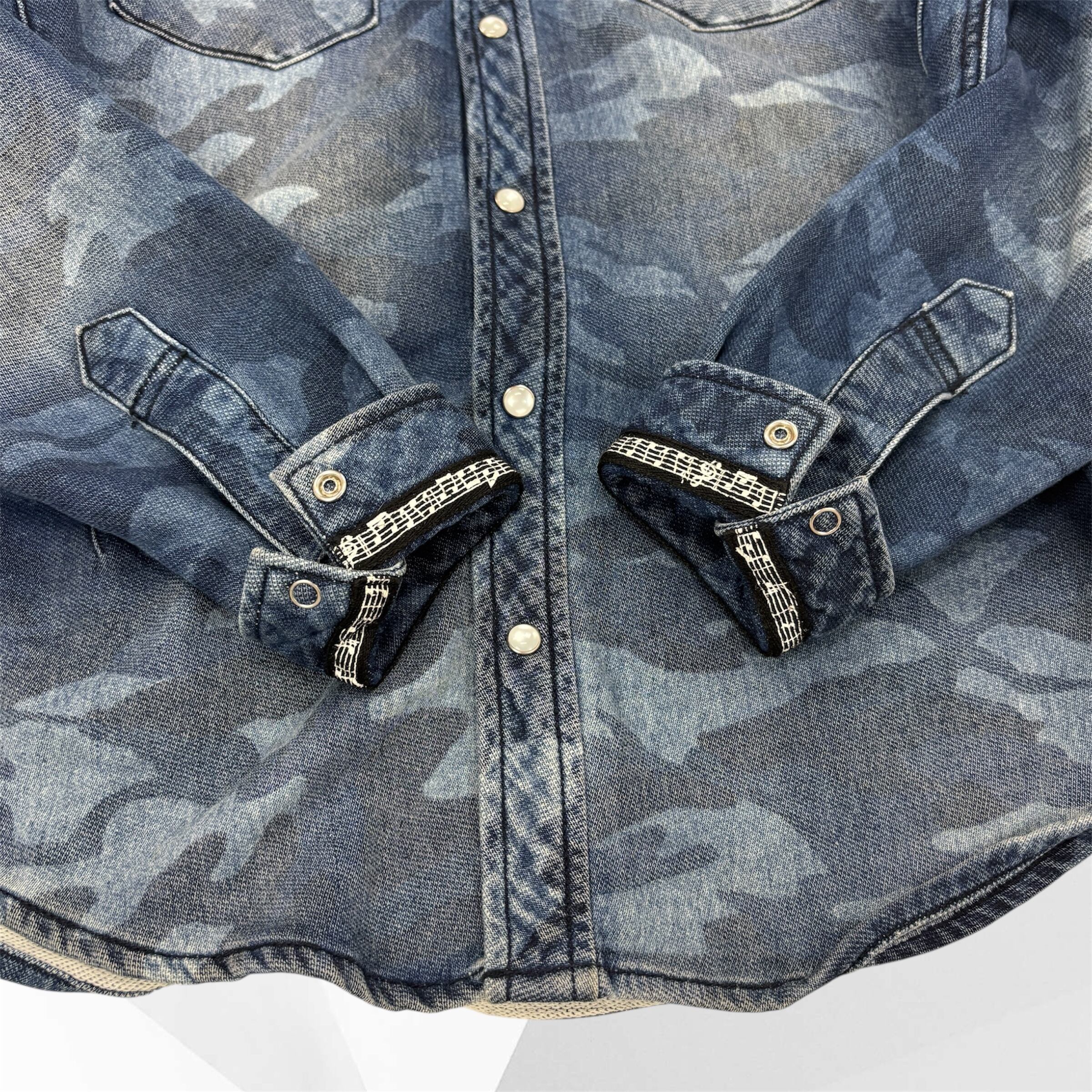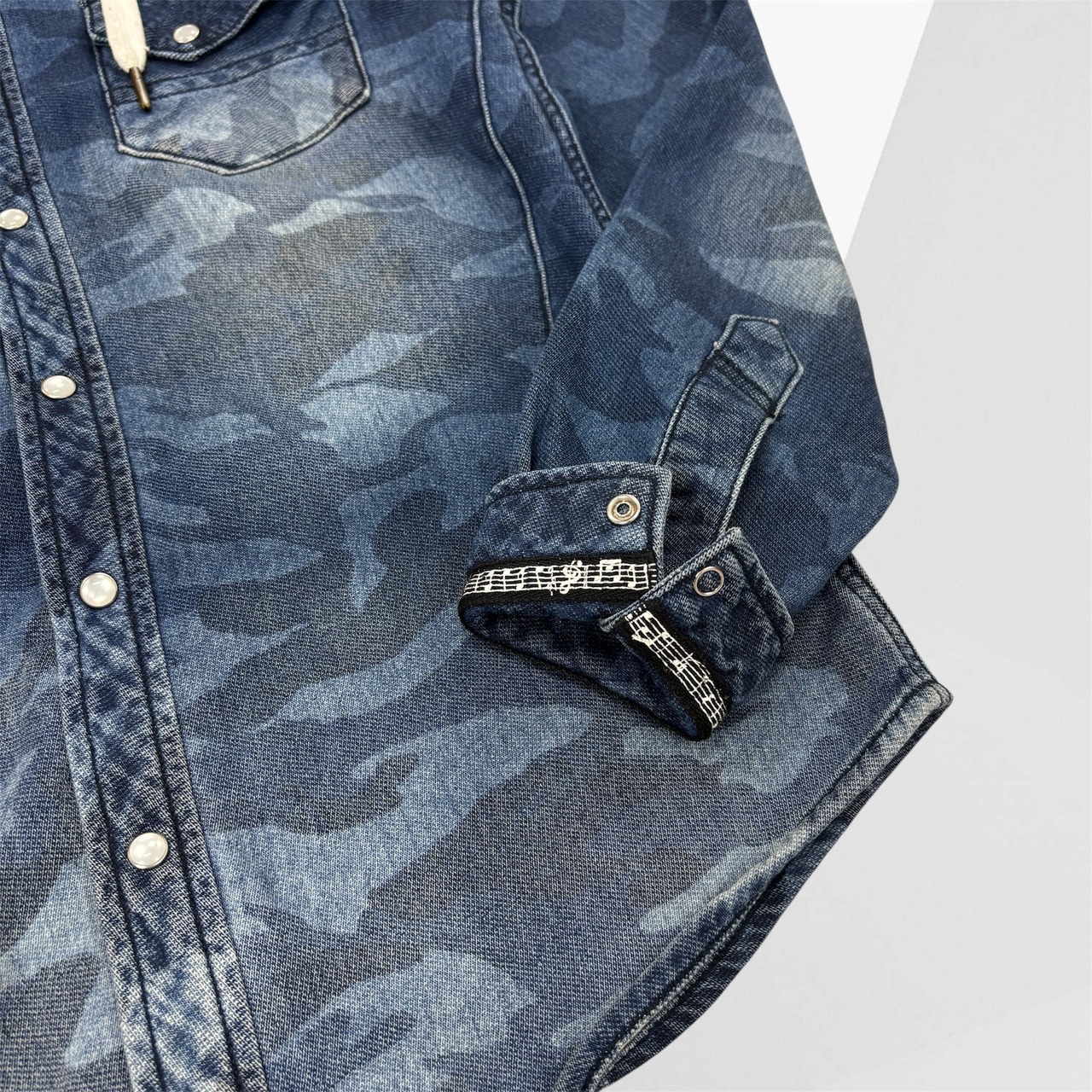 音楽とファッションのカルチャーを背景に持つNUMBER(N)INEらしく、袖裏には音符柄のライニングが施され、細部まで遊び心と美学が宿っています。