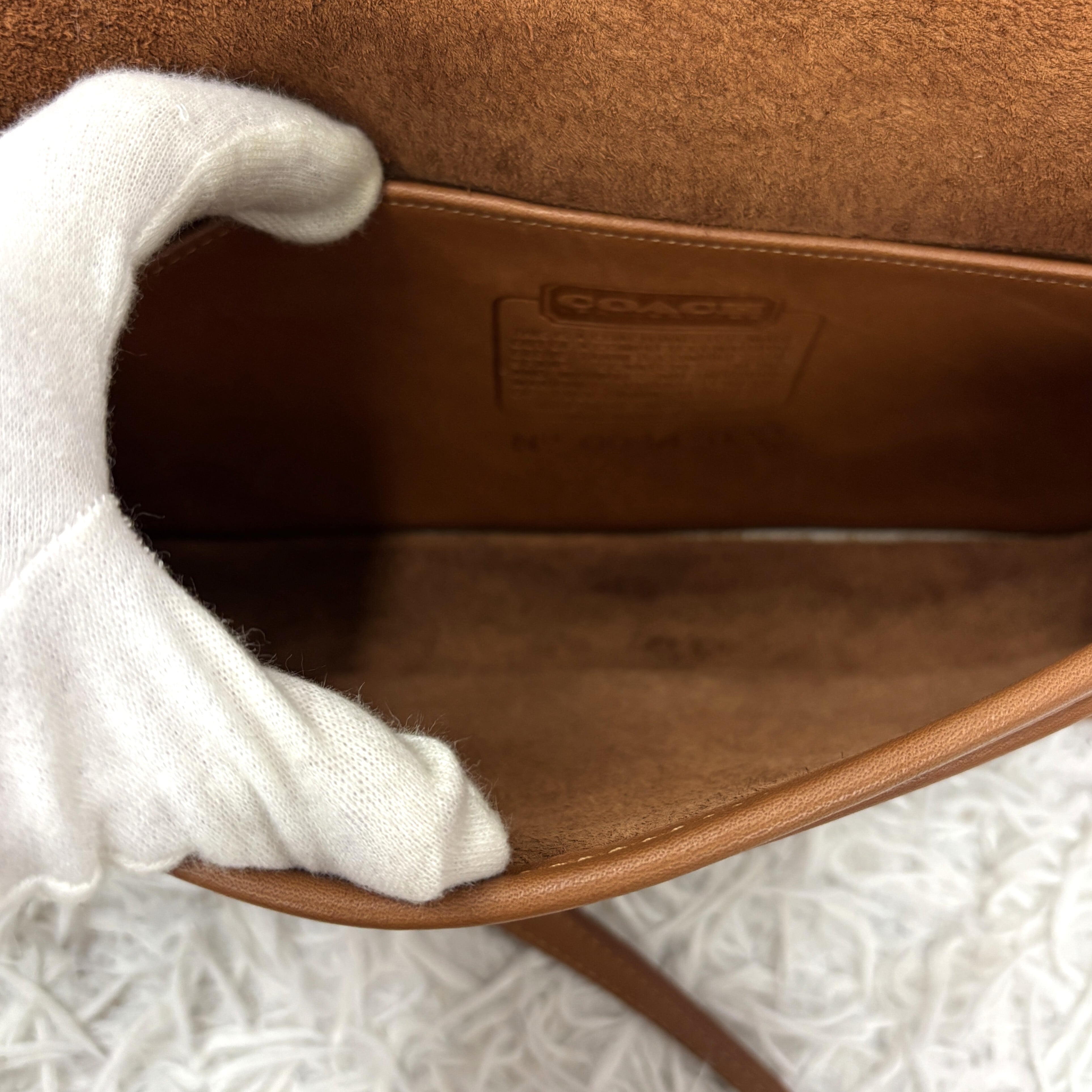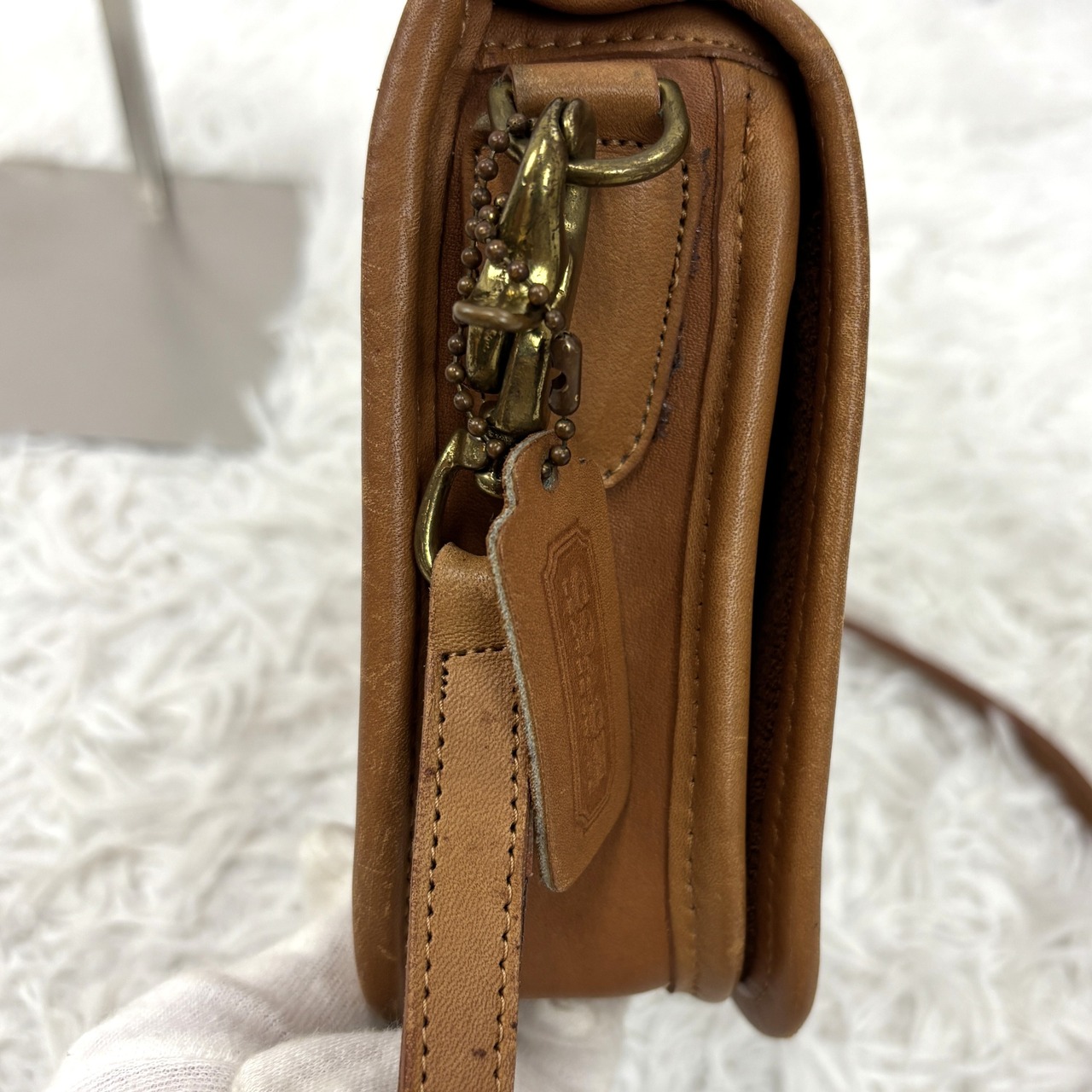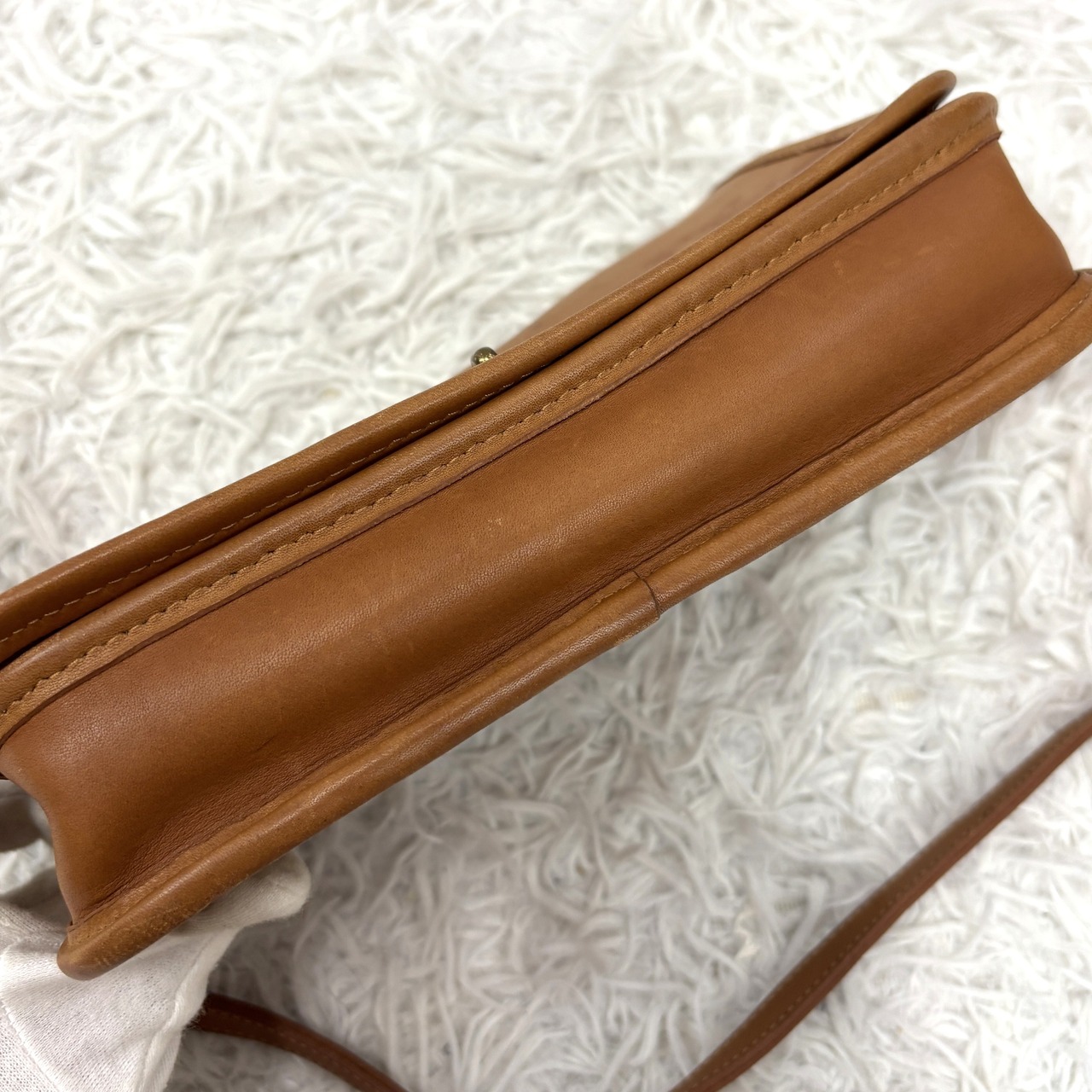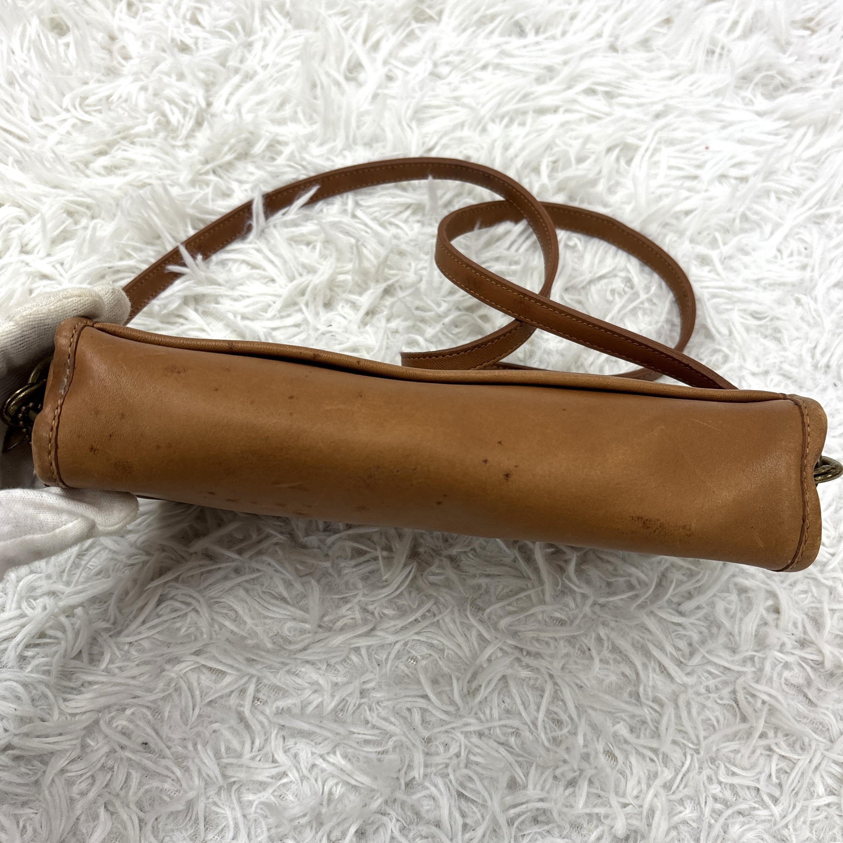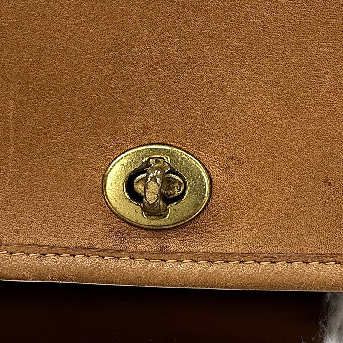 1980~90年代に製造されたオールドコーチの名品。アメリカ製のグローブタンレザーは、使い込むほどに艶と深みが増し、持ち主のライフスタイルに寄り添う育てるバッグとして愛されています。ターンロックの金具やロゴチャームが、クラシックな佇まいに品格を添えます。