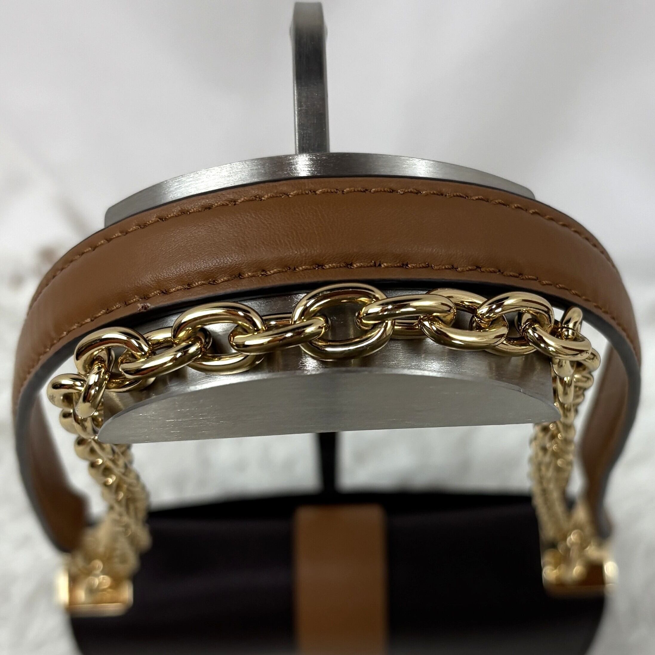 ★ゴールドのロゴプレートやチェーンディテールがラグジュアリーなアクセント