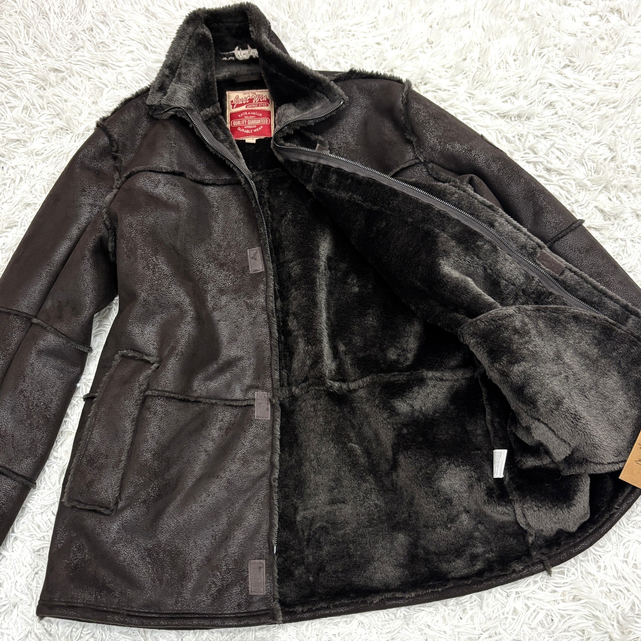 冬の街に映える、JUST WINのムートンジャケット。