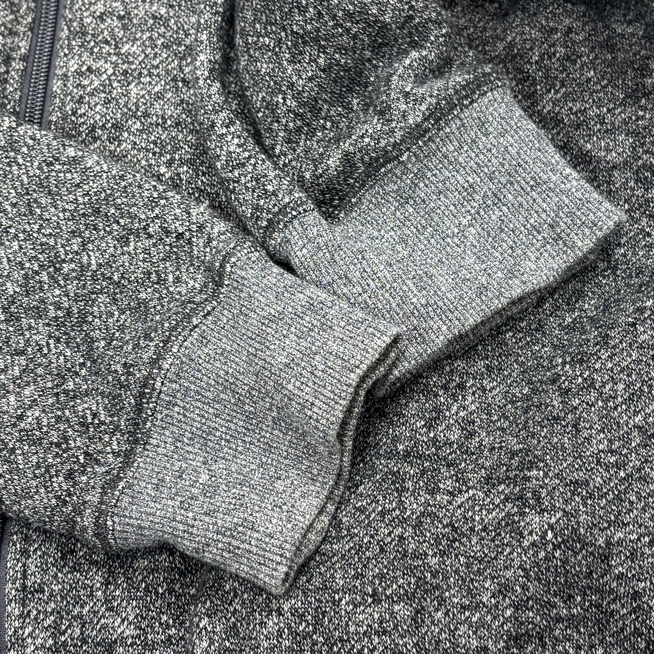 表地は落ち着いたグレートーン素材、裏地にはふんわりとした裏起毛を採用し、保温性と快適性を両立。