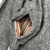 背当てとサイドポケットの内側には、ブランドのアイコンでもあるマルチストライプ柄がさりげなく施され、脱ぎ着の瞬間にもPaul Smithらしさが光ります。