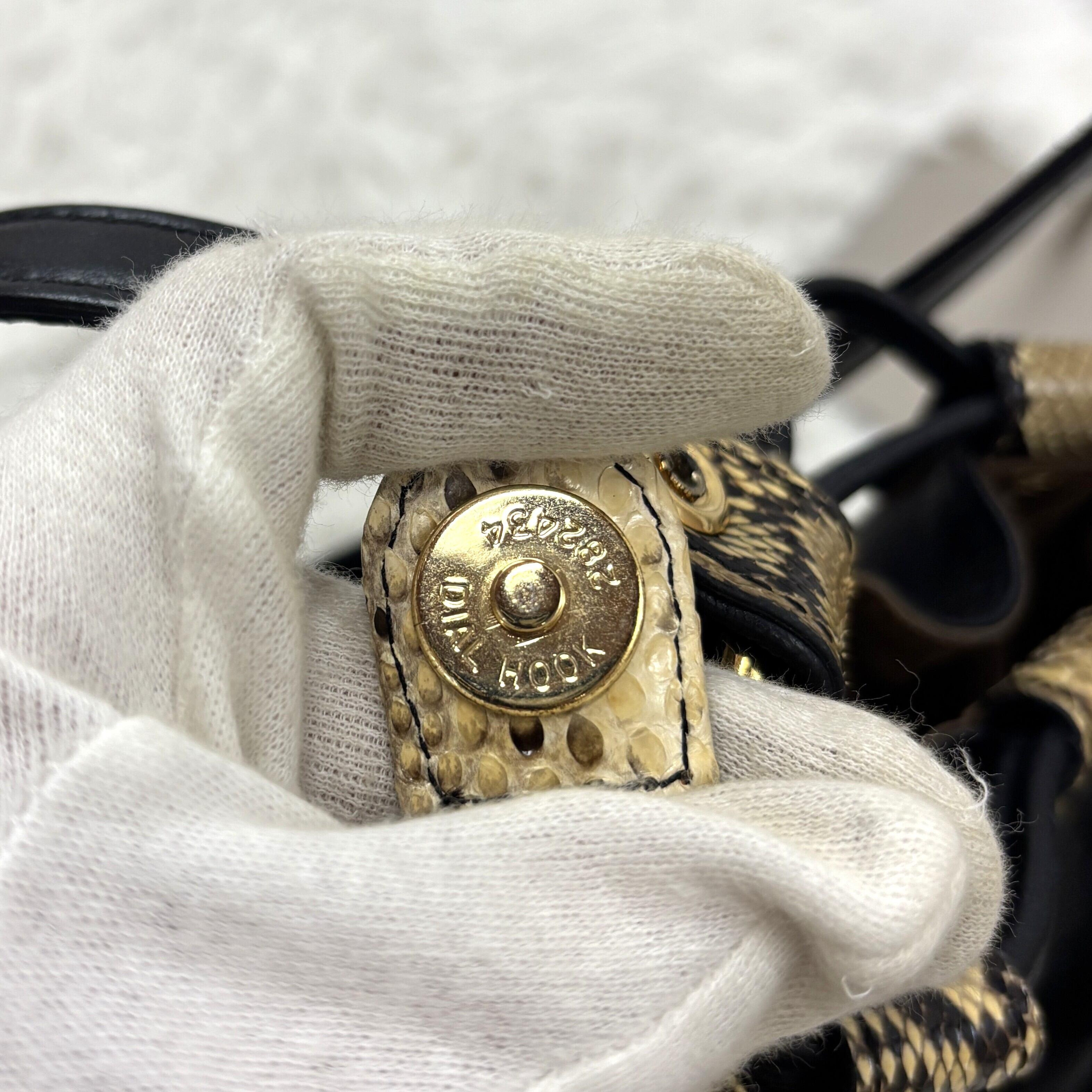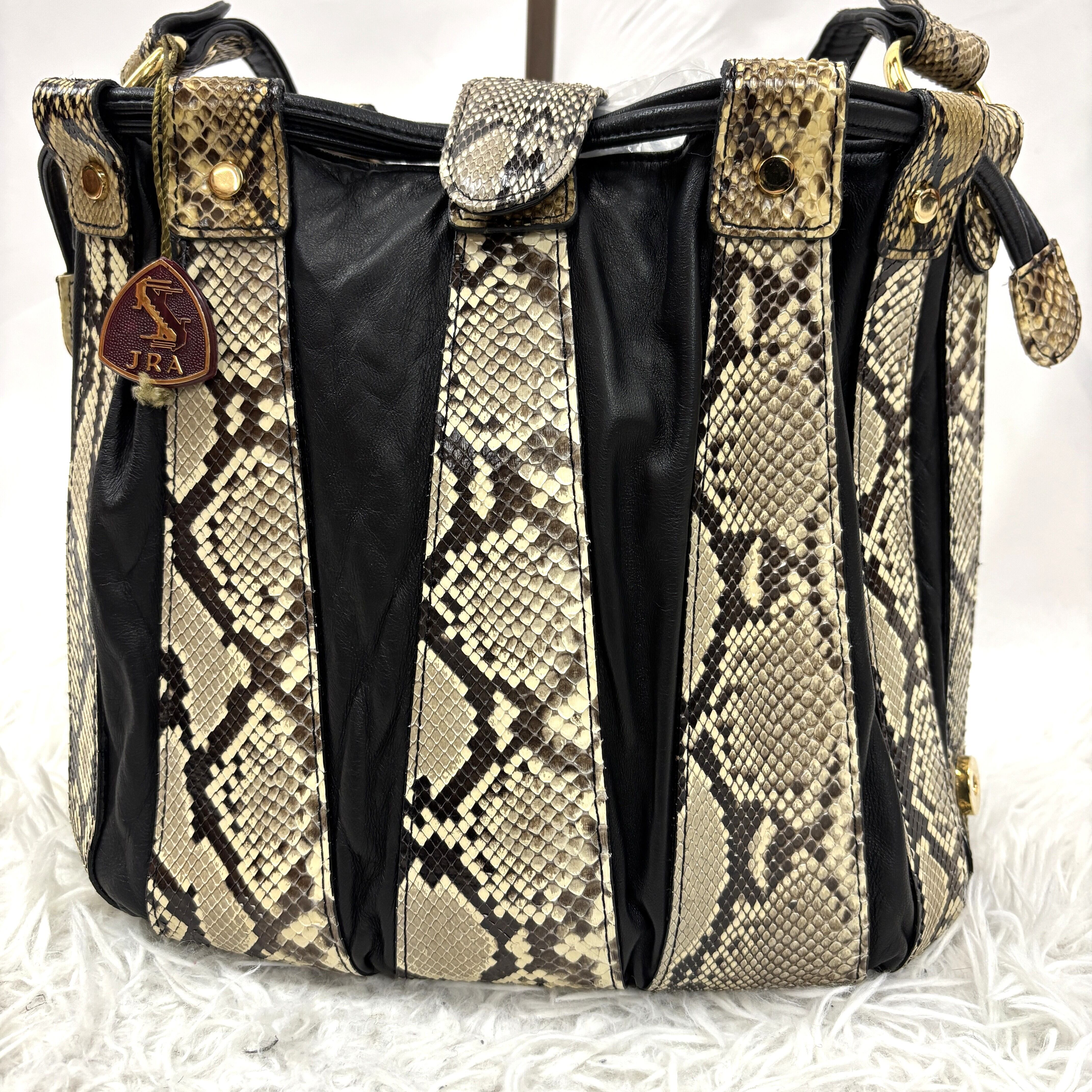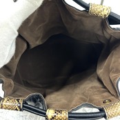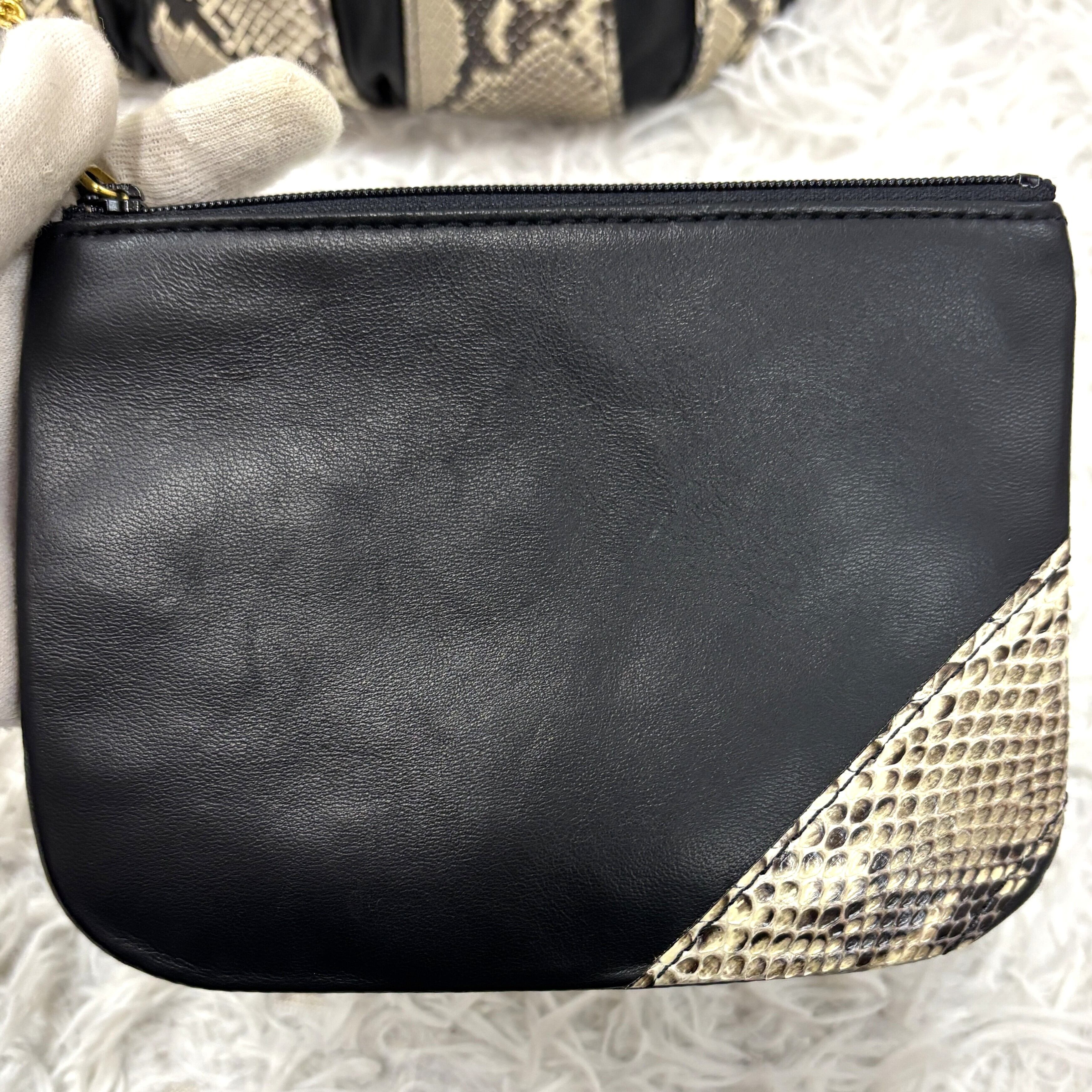 希少価値の高いJRA認定ダイヤモンドパイソンを贅沢に使用した、巾着型にもトート型にも使える2Wayショルダーバッグ。