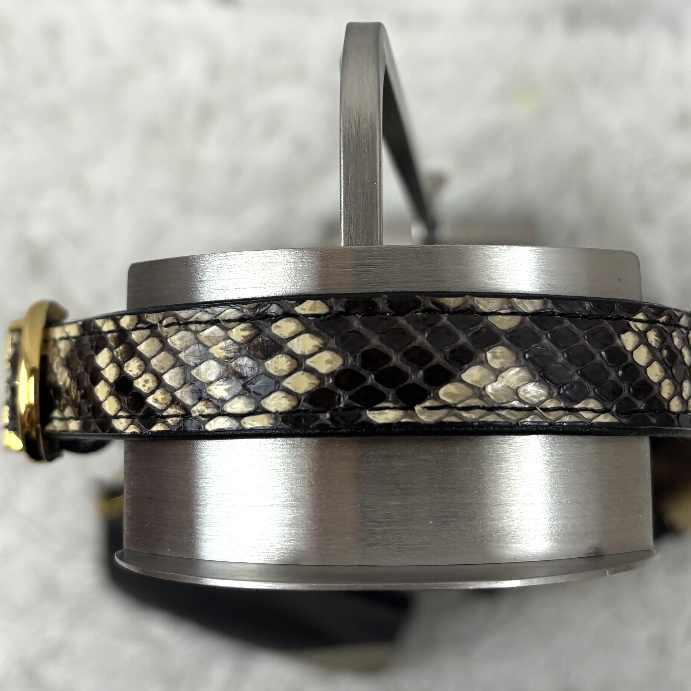 パイソンレザー特有の艶やかな鱗模様は、使い込むほどに深みを増し、持ち主の個性とともに育つ素材。
