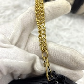 ゴールド金具がラグジュアリーな輝きを添え、付属のポーチも同素材で統一された逸品です。