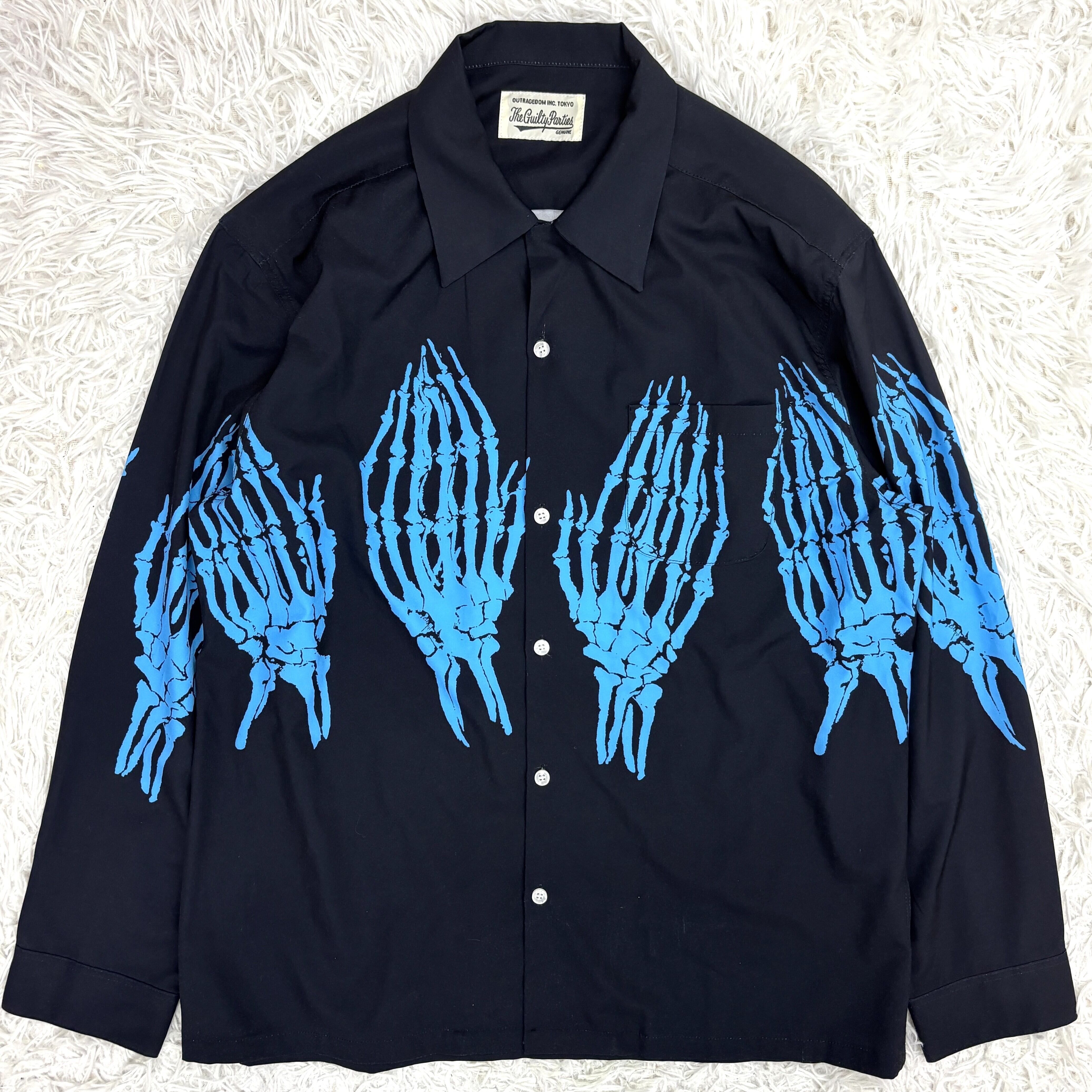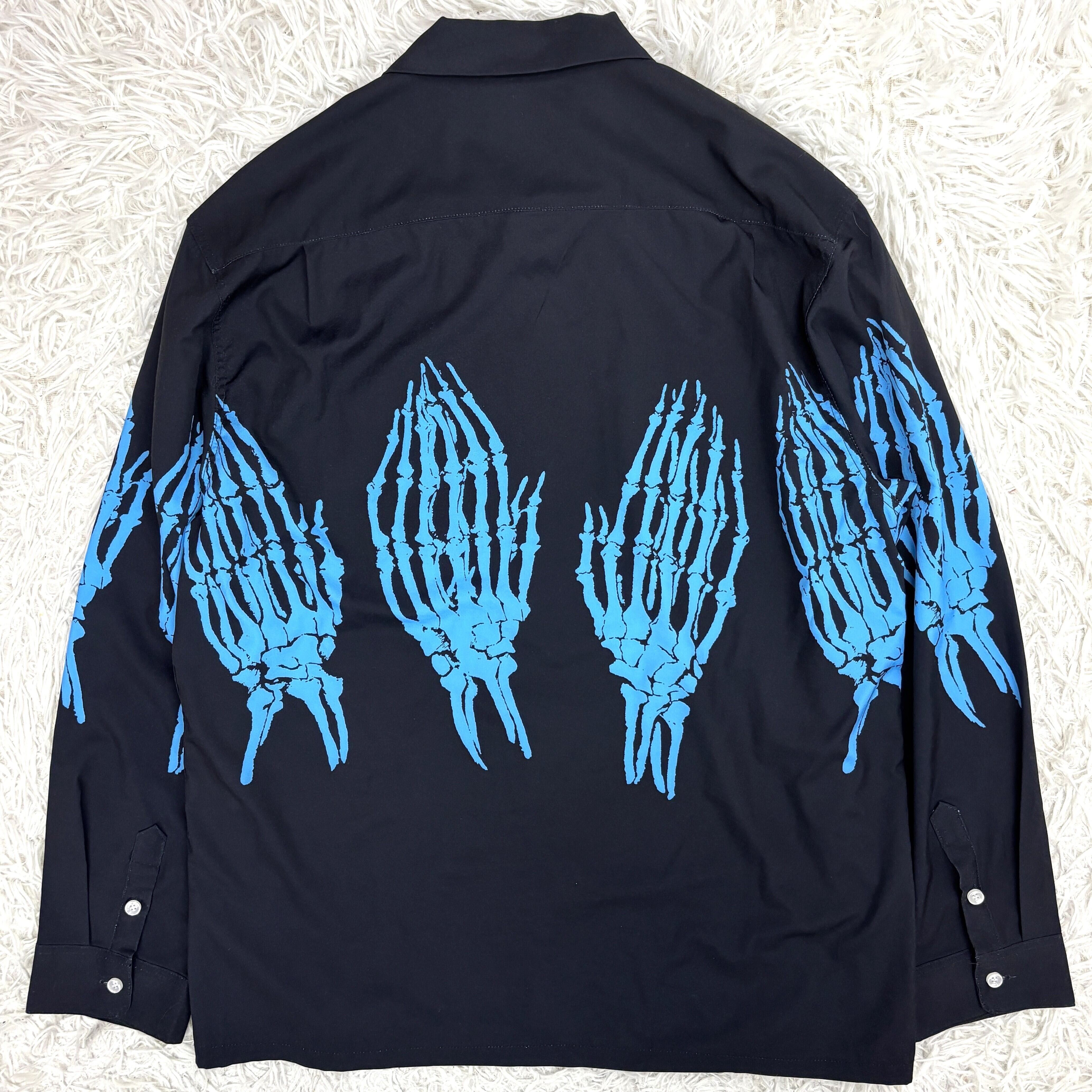 WACKO MARIAのアイコニックな「スカルプレイハンド」柄ハワイアンシャツです。
