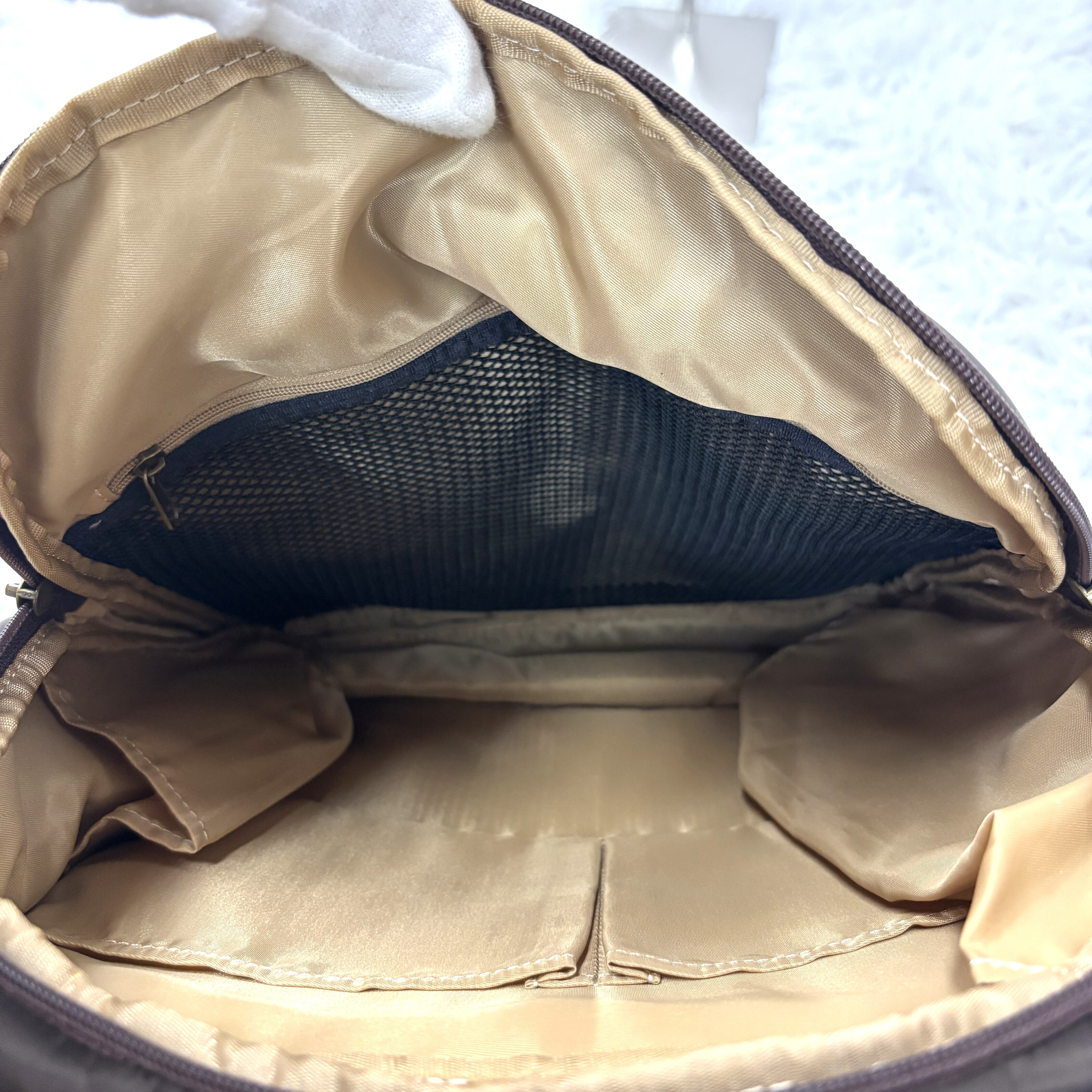 ポケット豊富で収納力も抜群。内側にはメッシュポケットや仕切りがあり、日常使いから旅先まで幅広く対応。