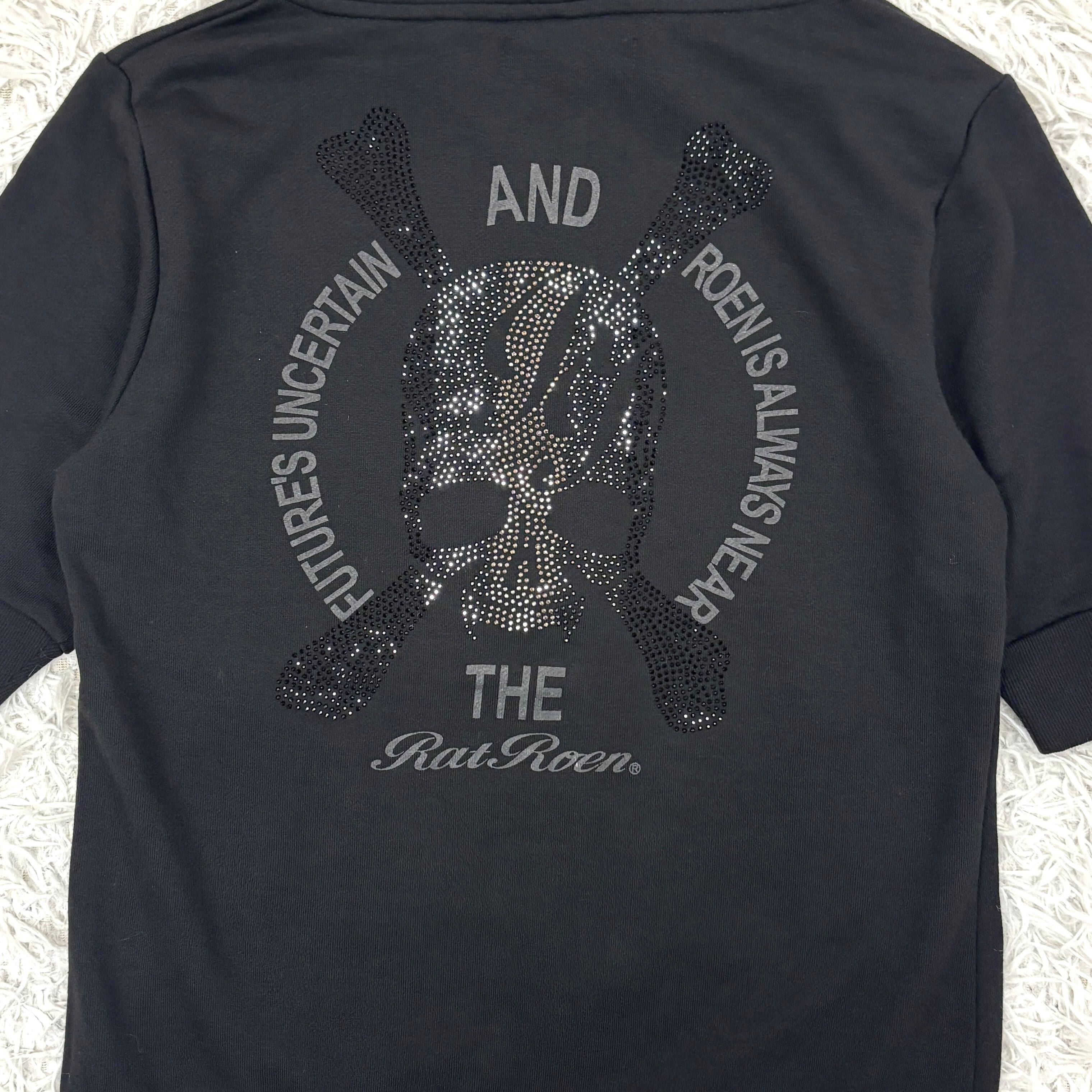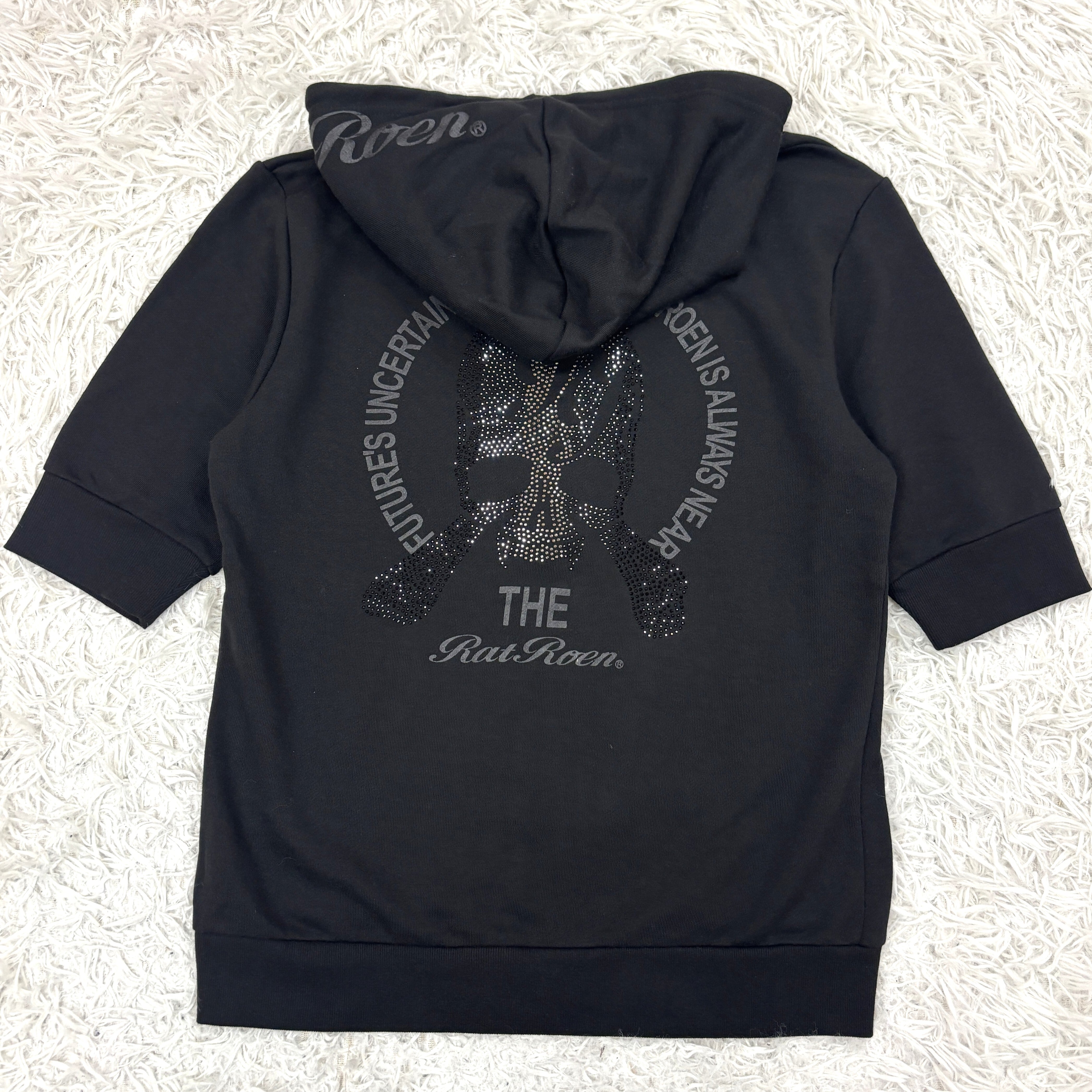 Rat Roen(ラットロエン)らしい反骨と美学が融合した、スカル×ラインストーン装飾のジップアップパーカー。