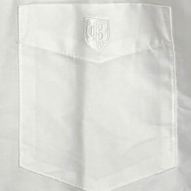 胸元のポケットには、ブランドの象徴であるロゴマークが刺繍されており、細部までこだわりが感じられるデザインです。
