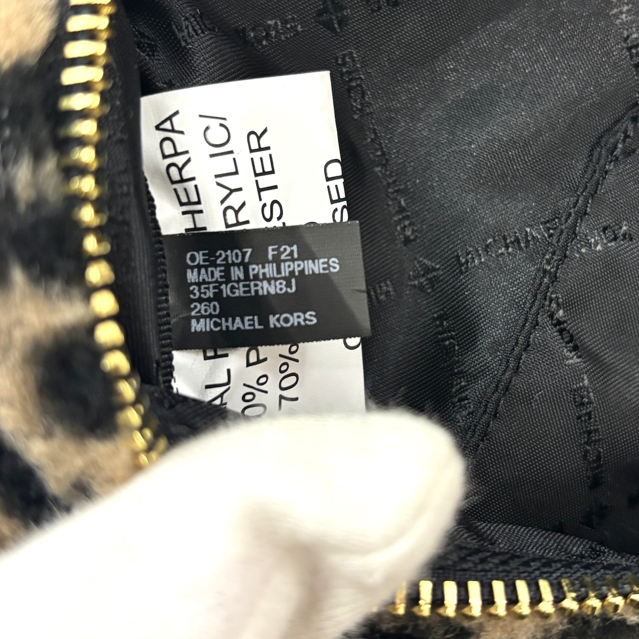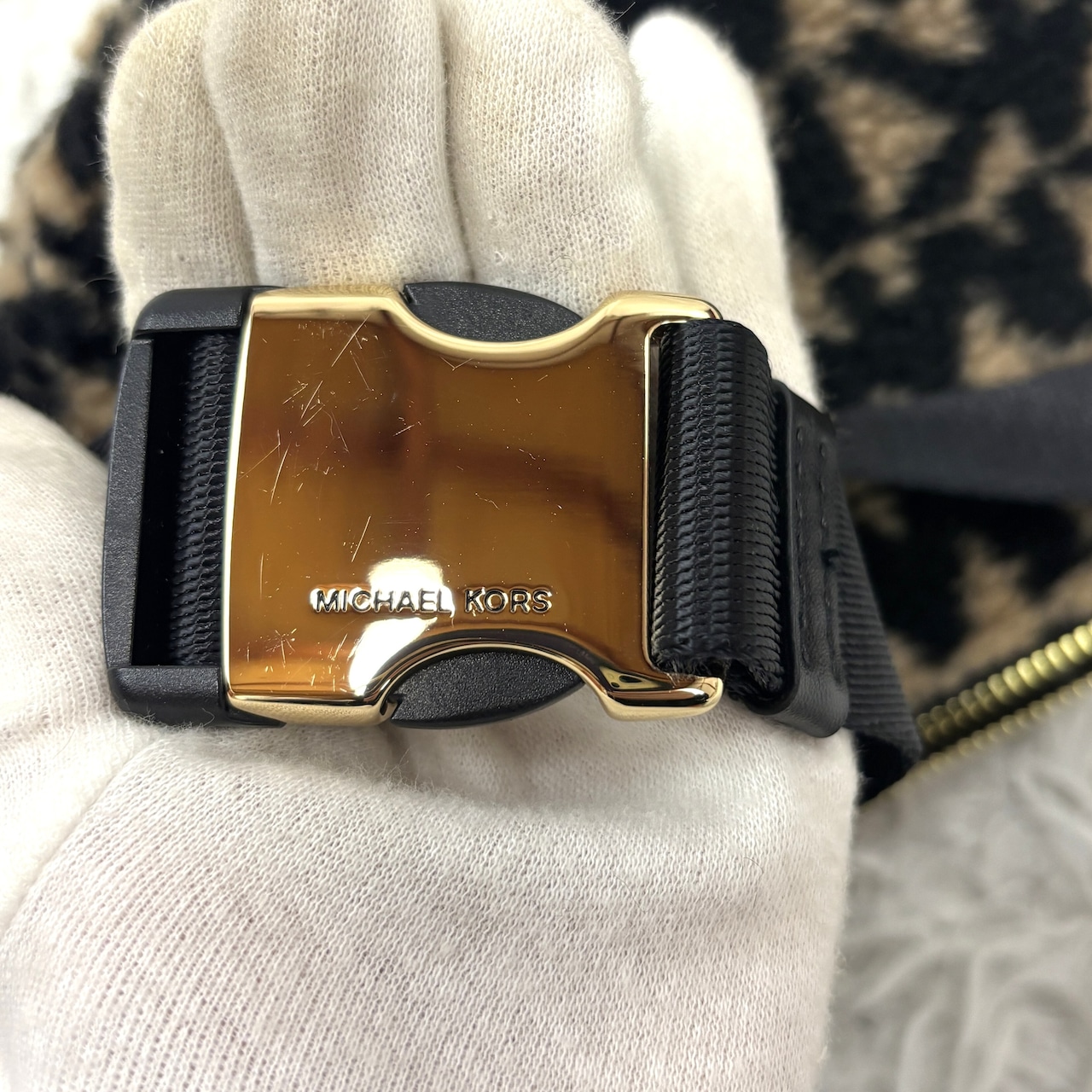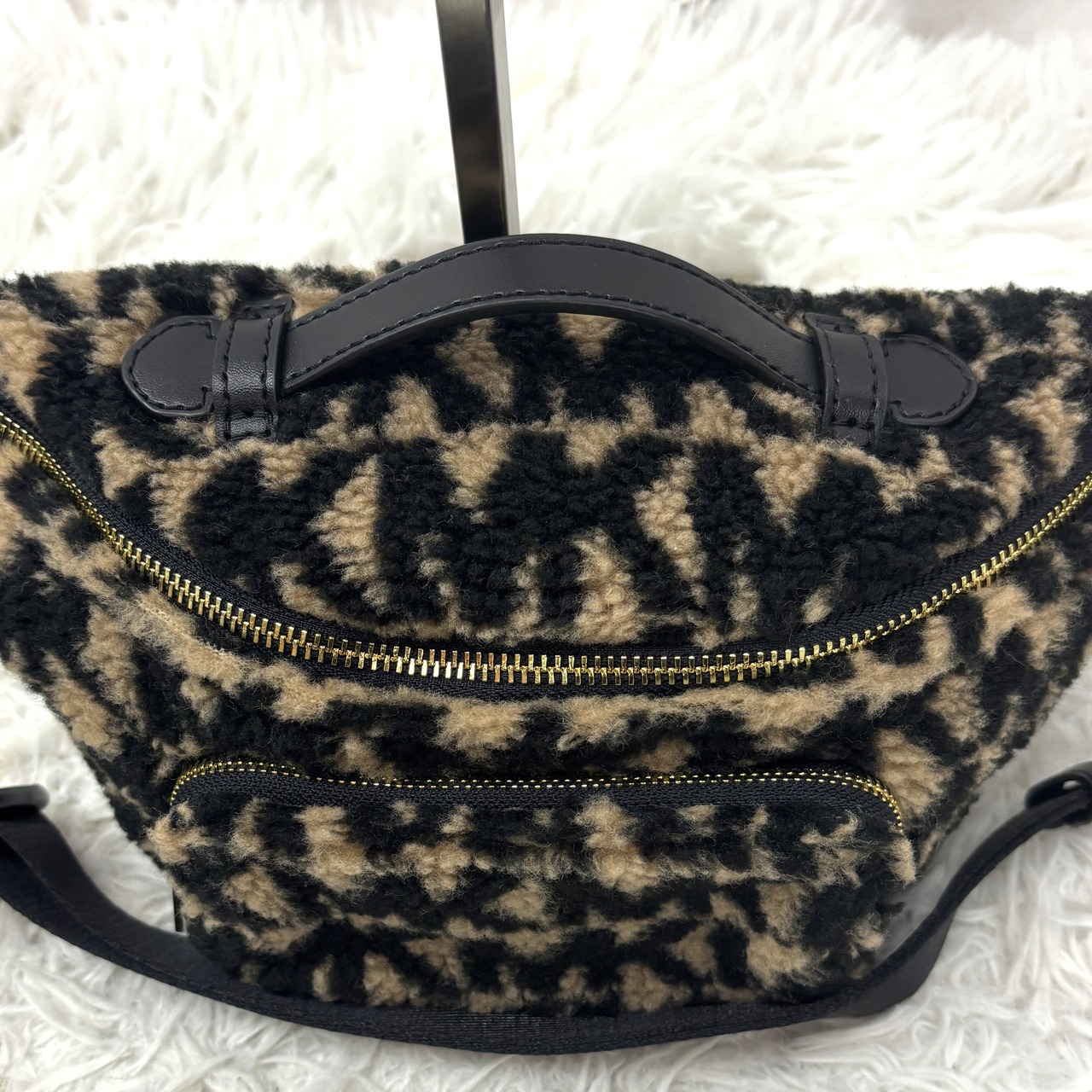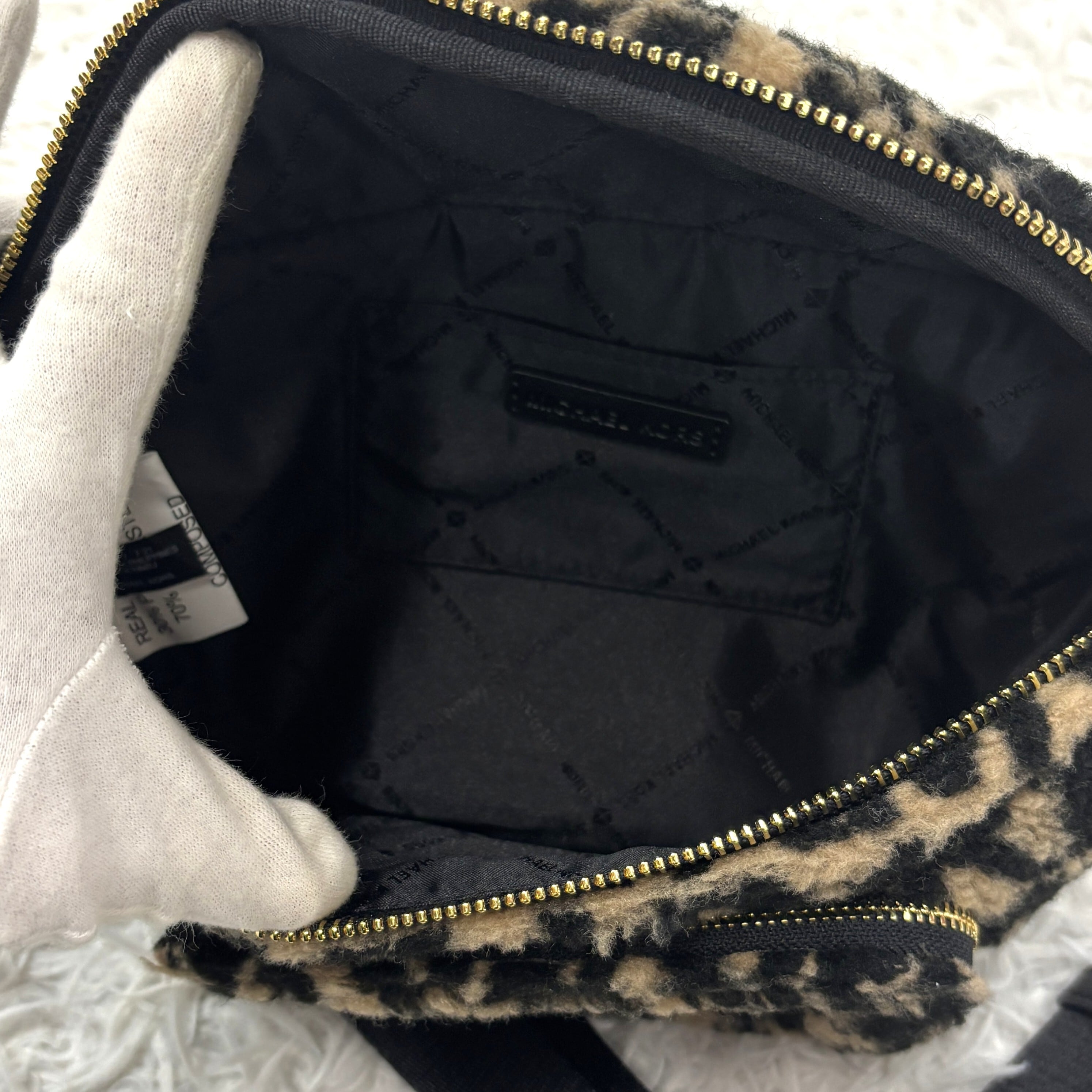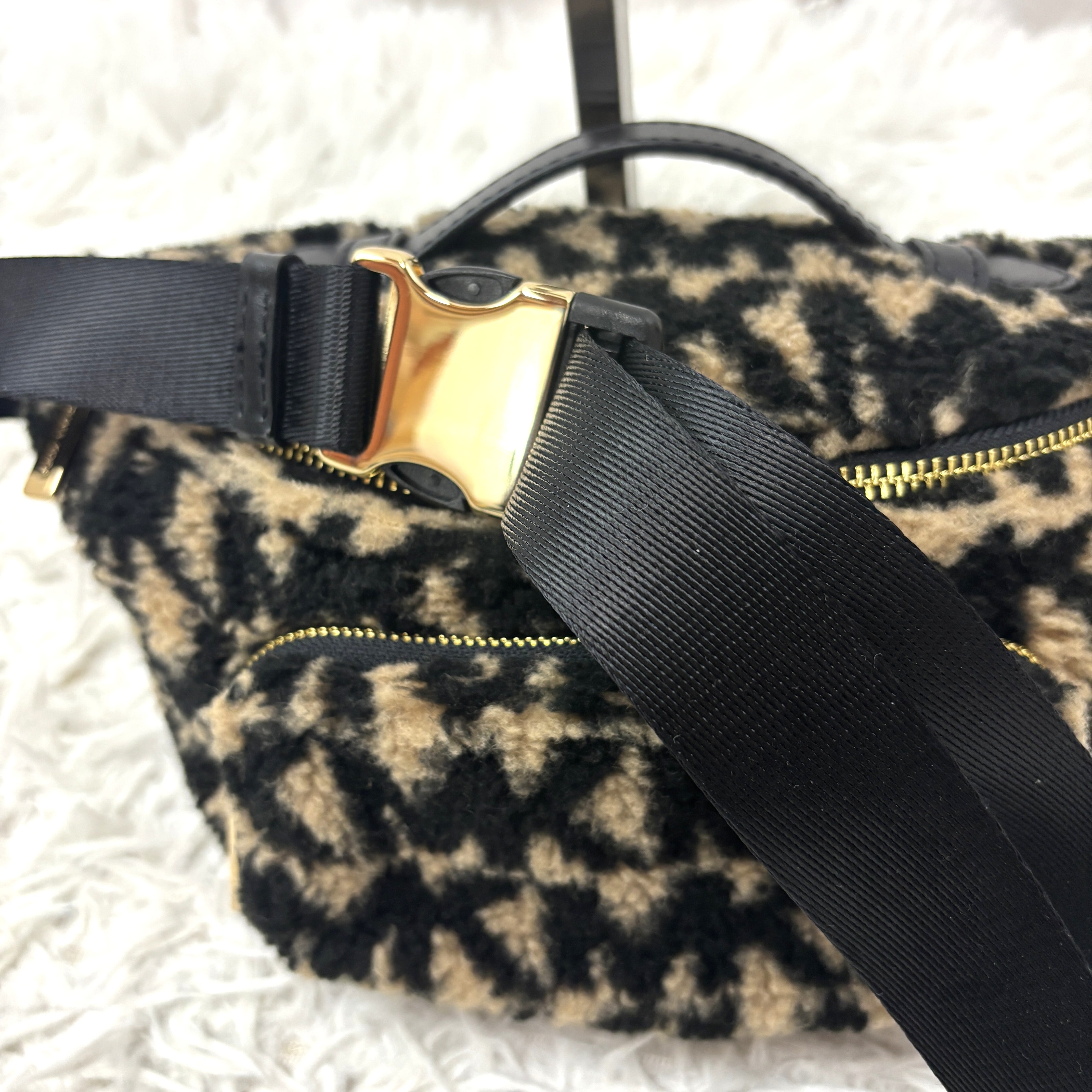 マイケルコースの人気モデル「ERINウエストバッグ」レオパード柄 フェイクファー素材のラグジュアリーな一点。