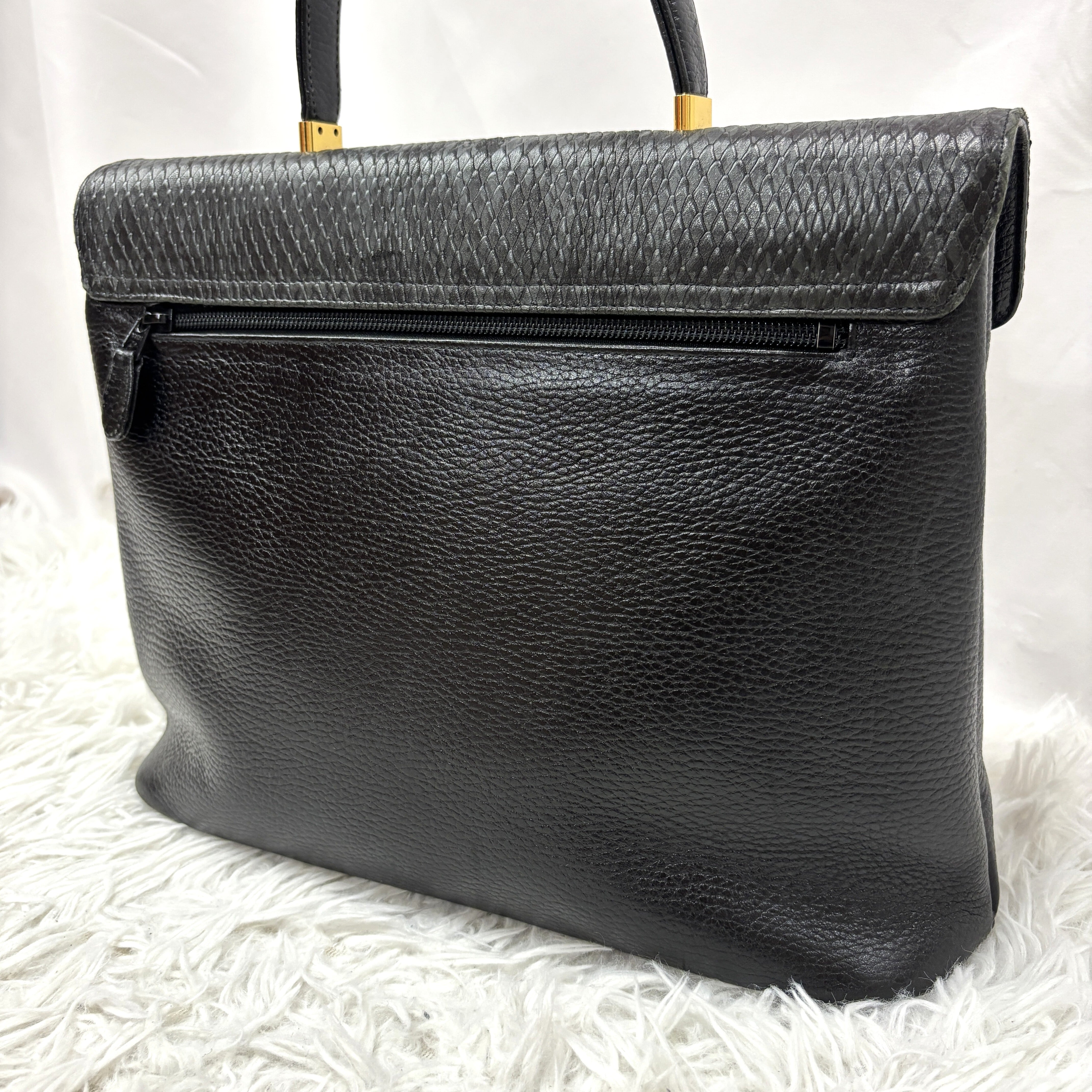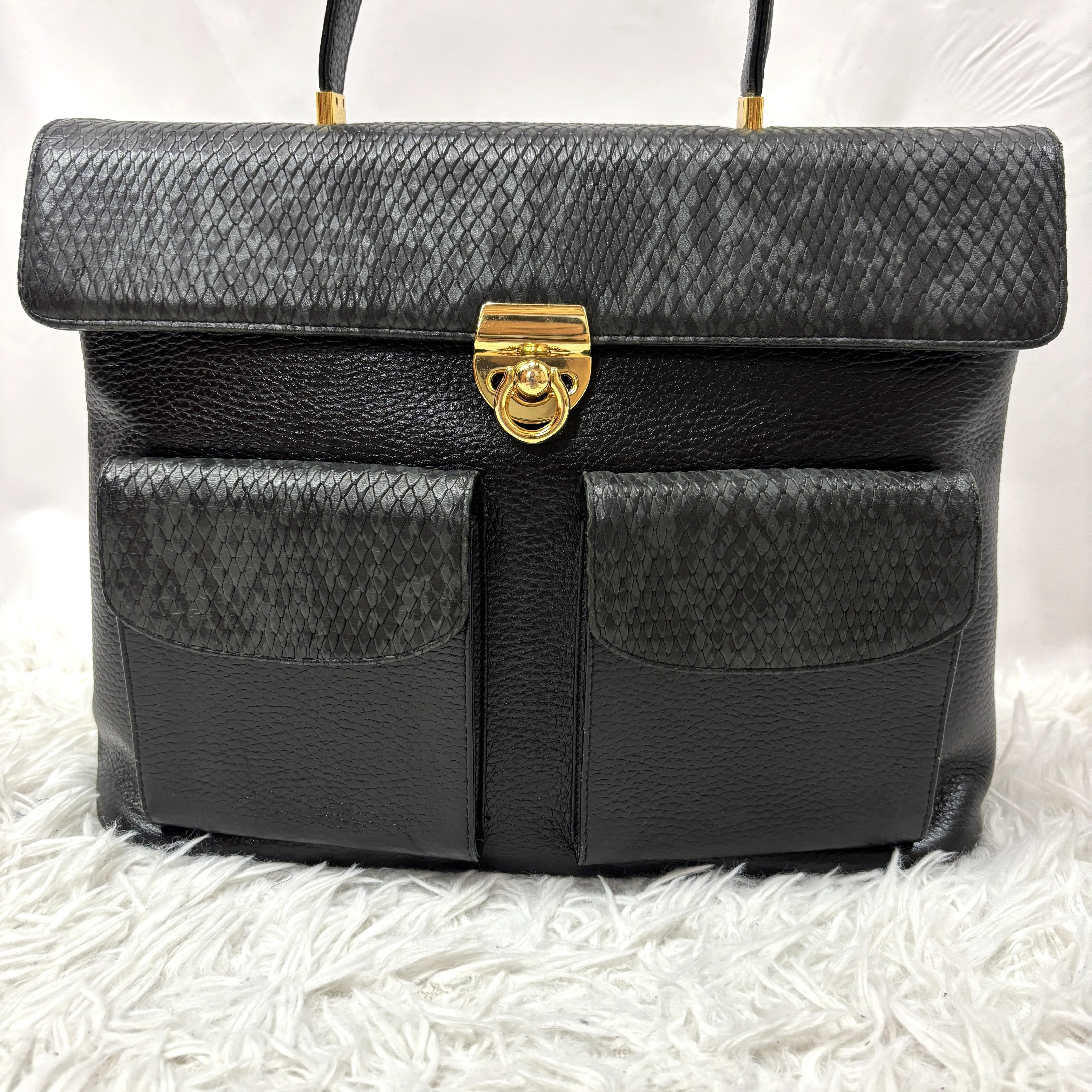 パイソン、レザーを使用し、丁寧に仕立てられたハンドバッグです。