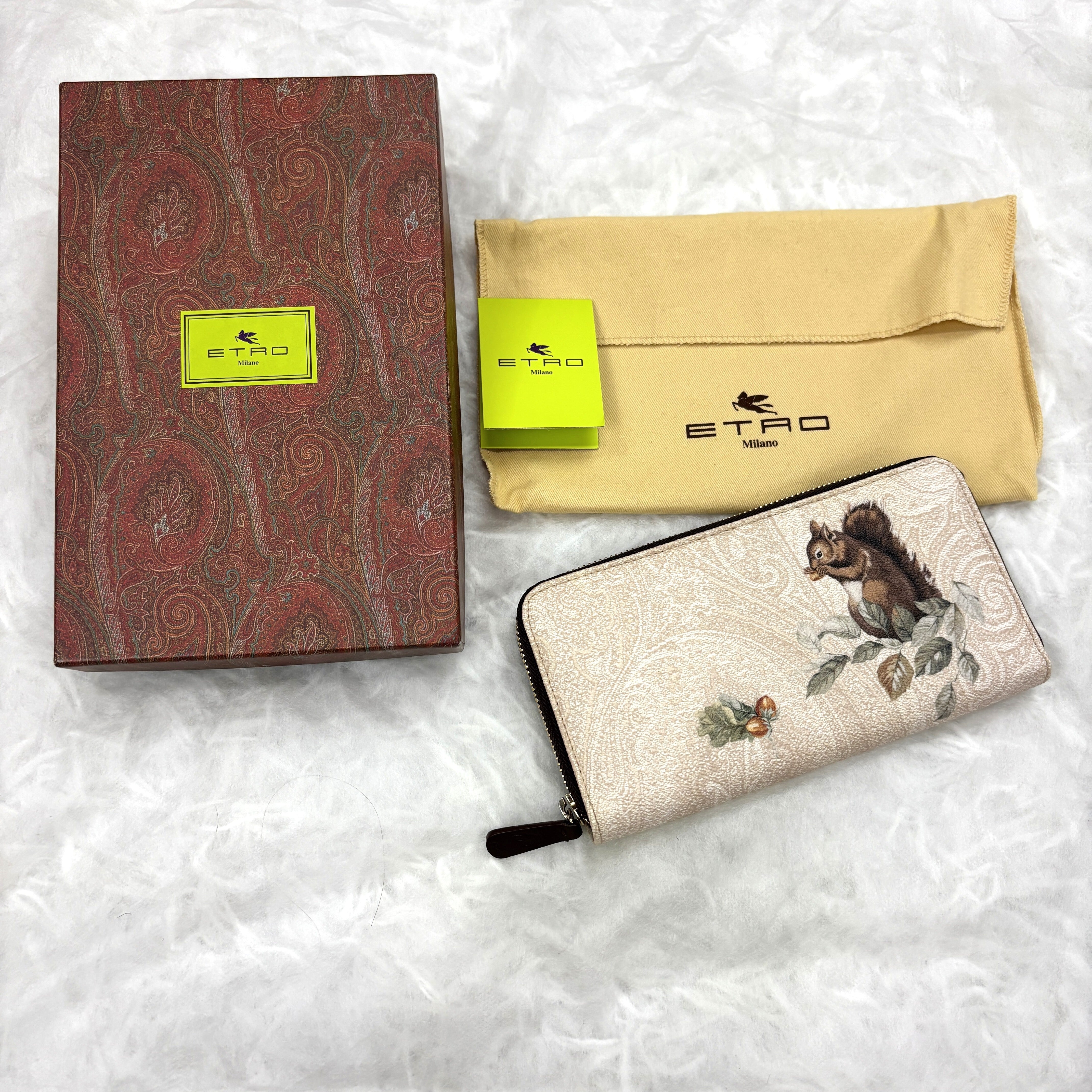エトロを象徴するペイズリー地に、可愛らしいリスと木の実が描かれたアーティスティックなデザイン。