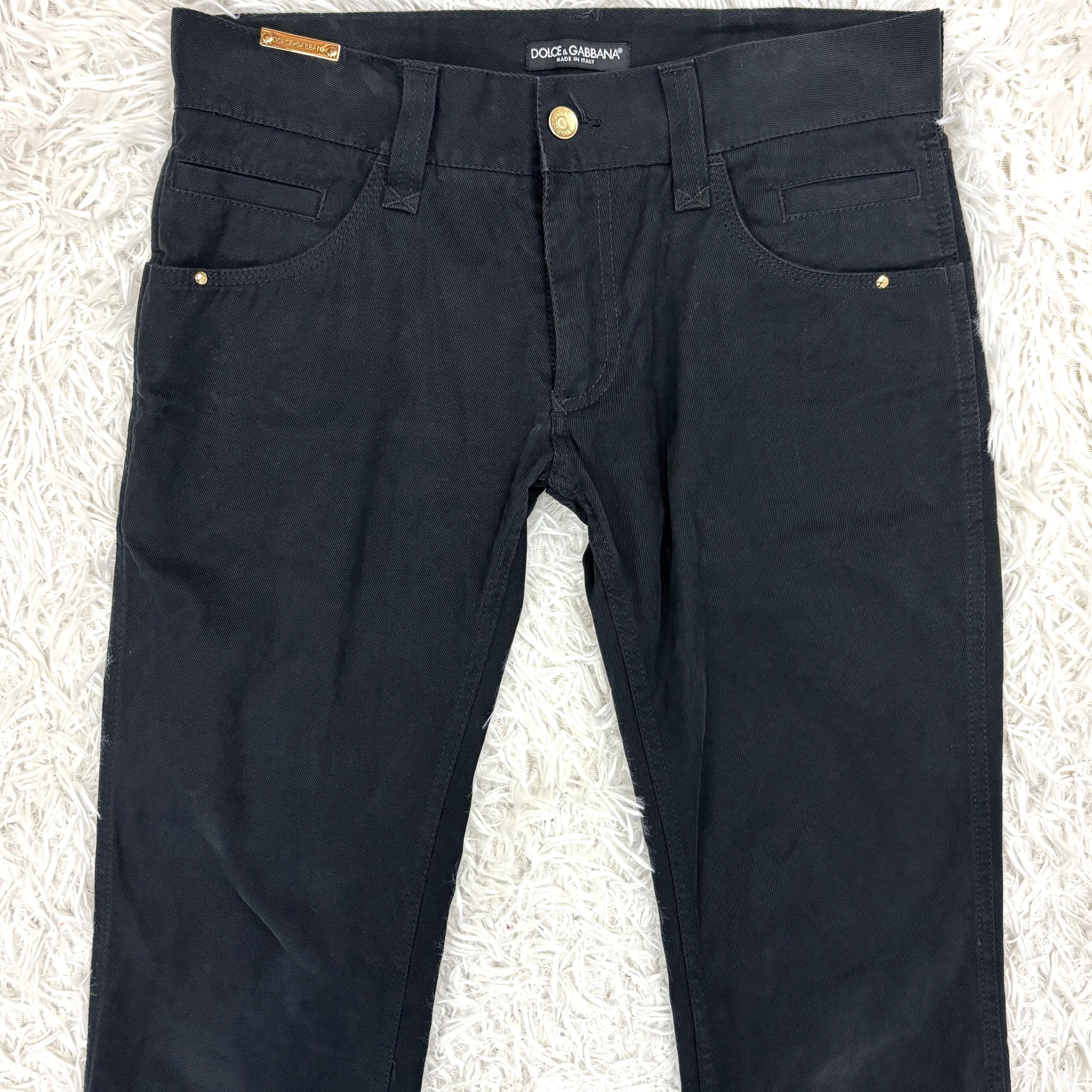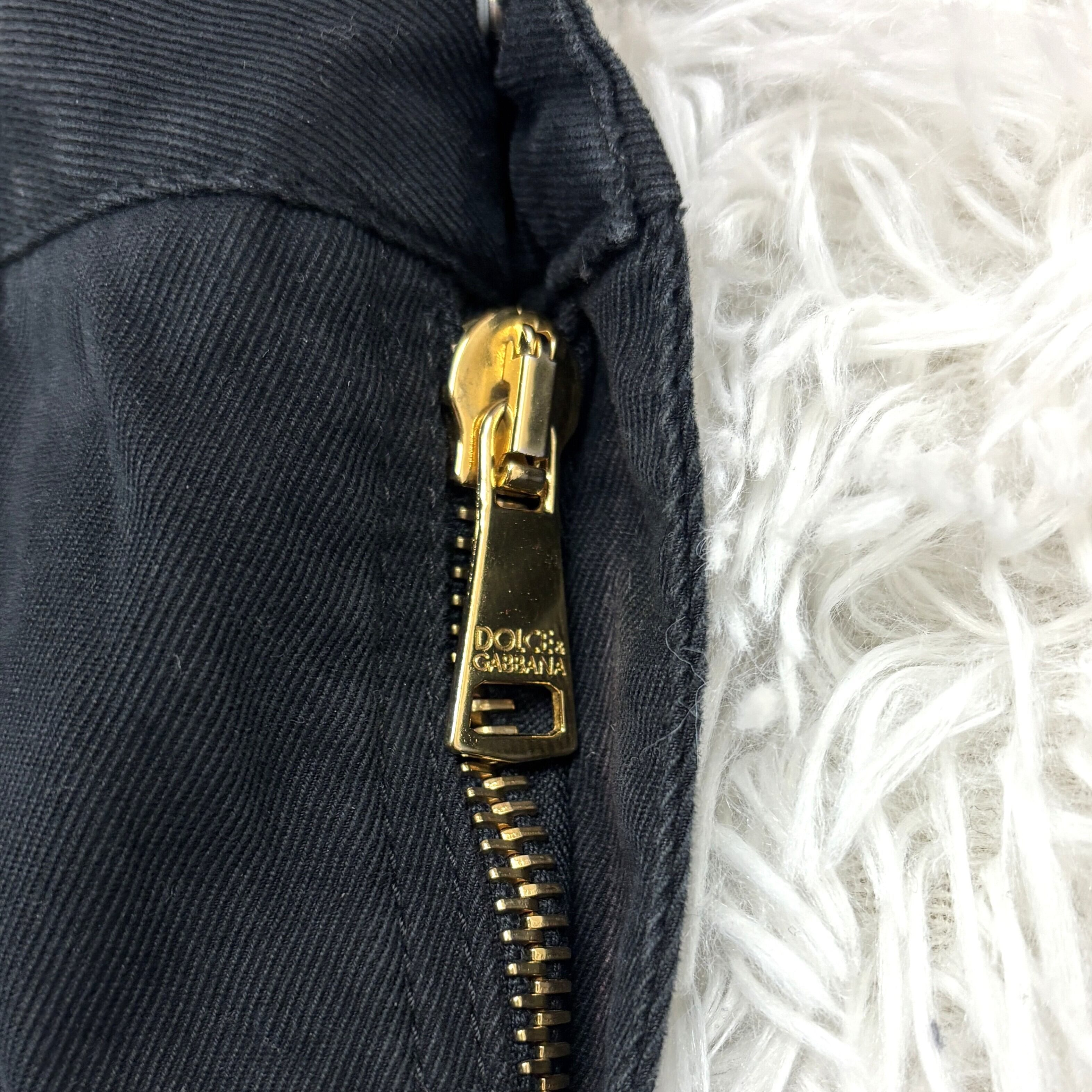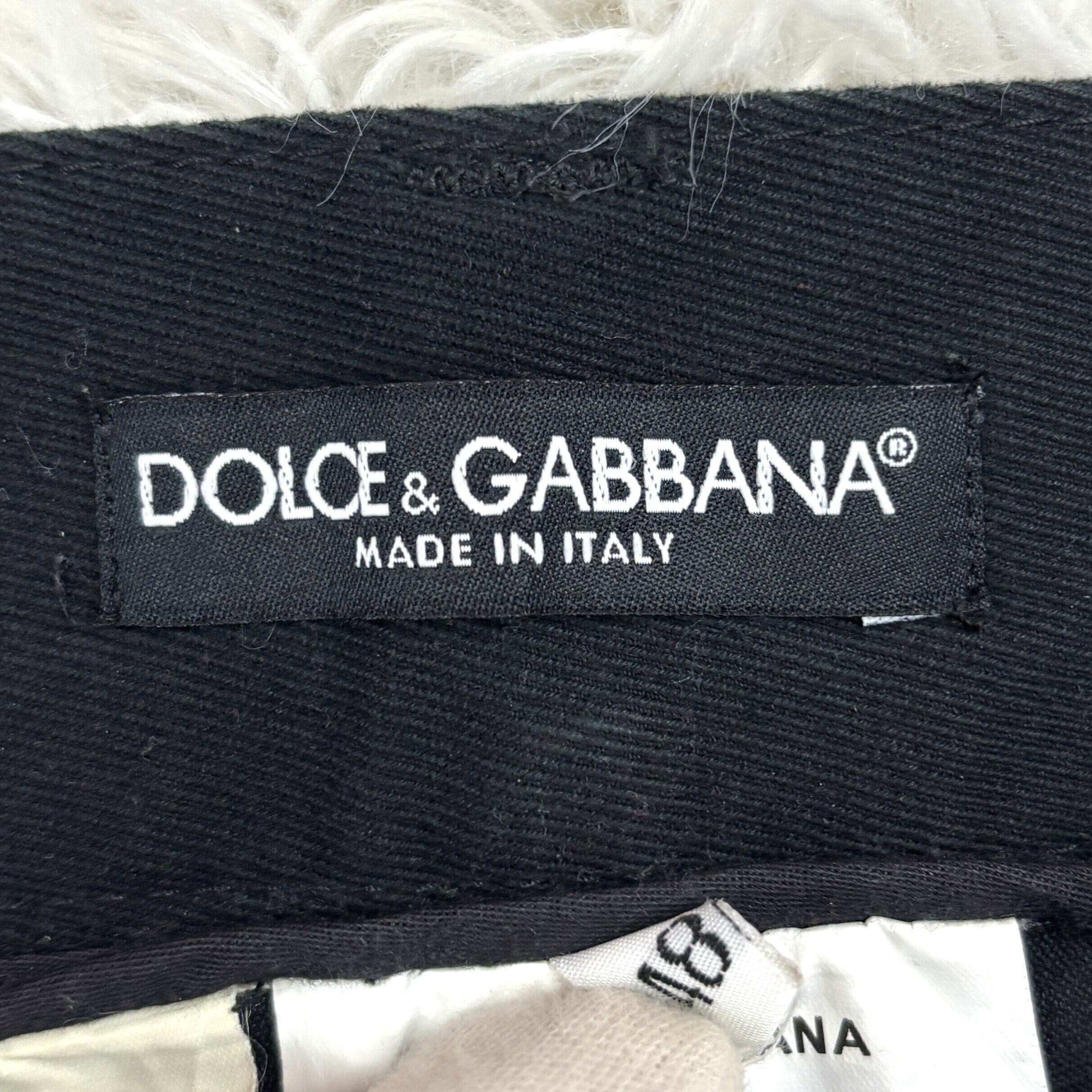 ウエスト金具・ボタン・ジップに至るまでブランド刻印入りのメタルパーツが使用され、D&Gらしい重圧感と存在感を放つ一本です。