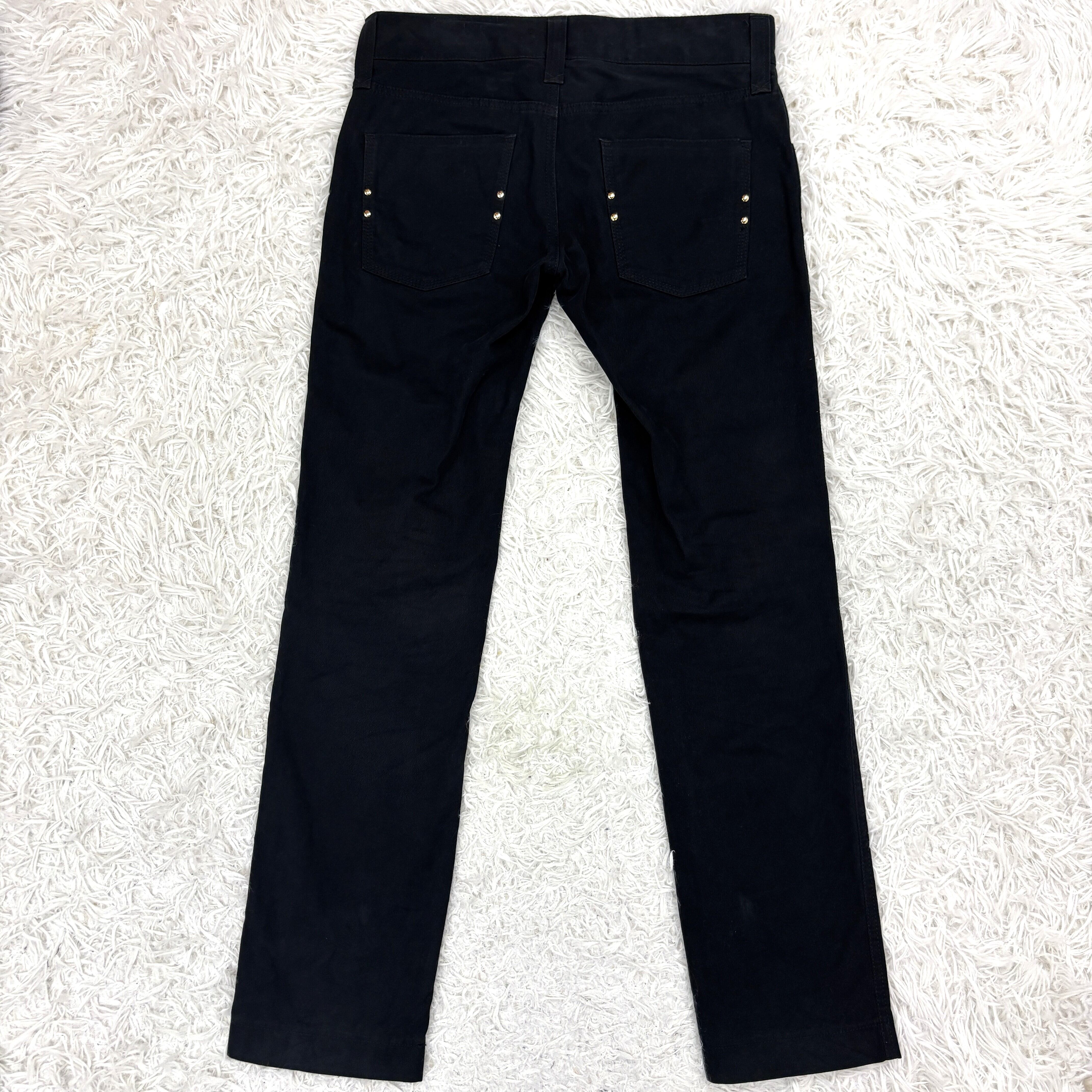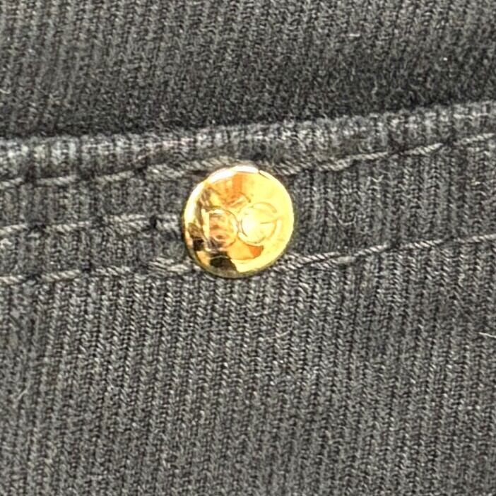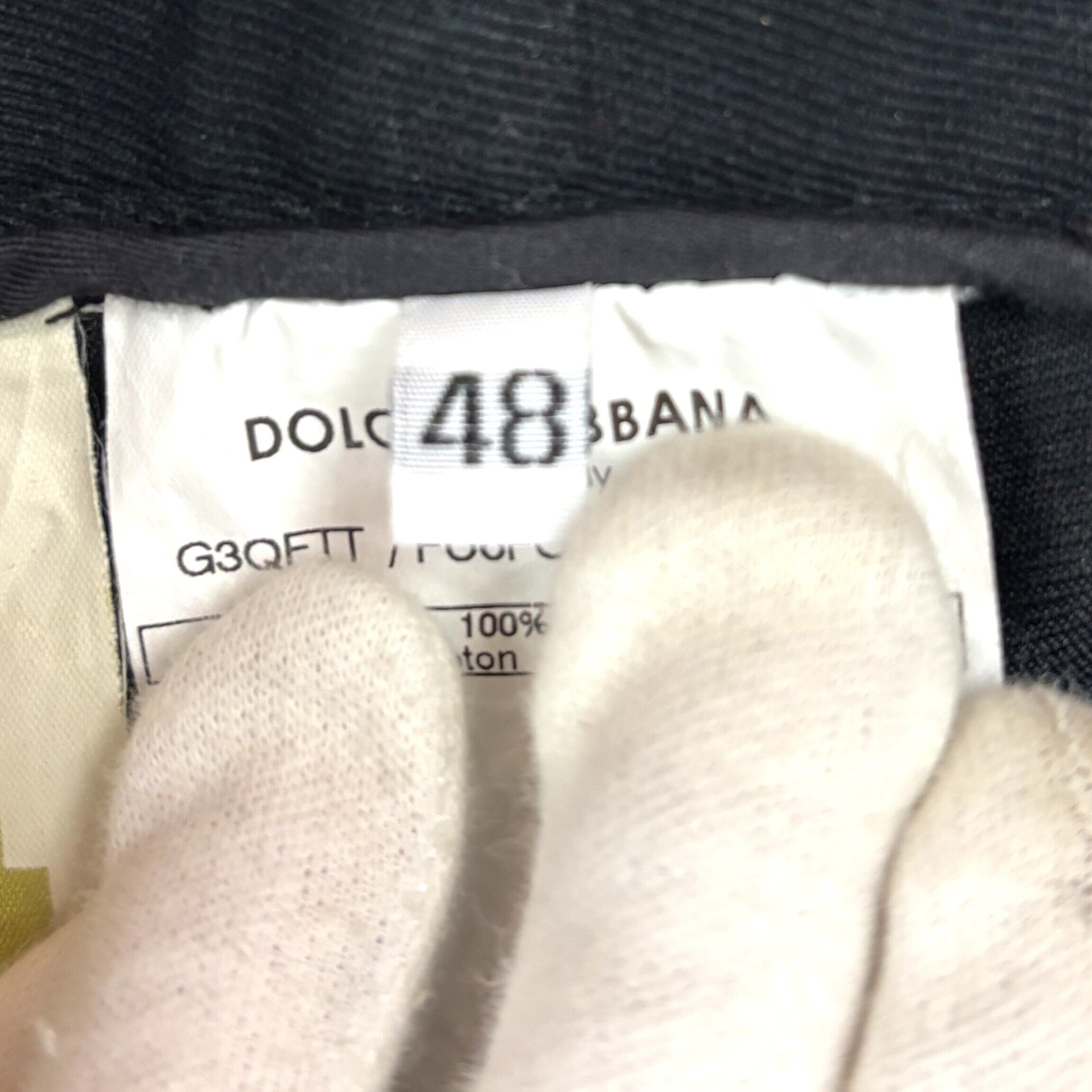 ウエスト金具・ボタン・ジップに至るまでブランド刻印入りのメタルパーツが使用され、D&Gらしい重圧感と存在感を放つ一本です。