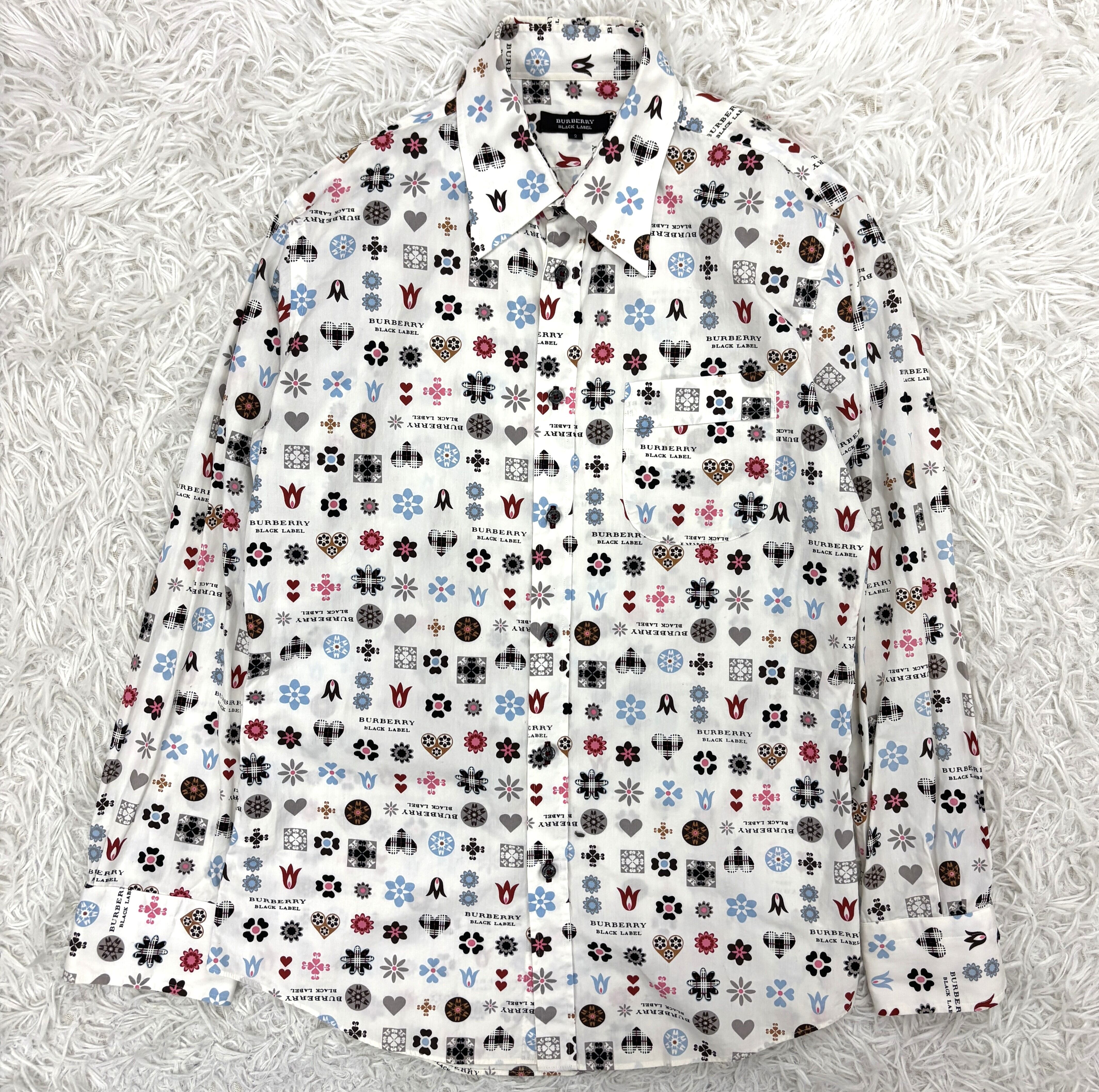 バーバリーブラックレーベル 長袖シャツ 総柄 2 M相当 ウォッシャブル