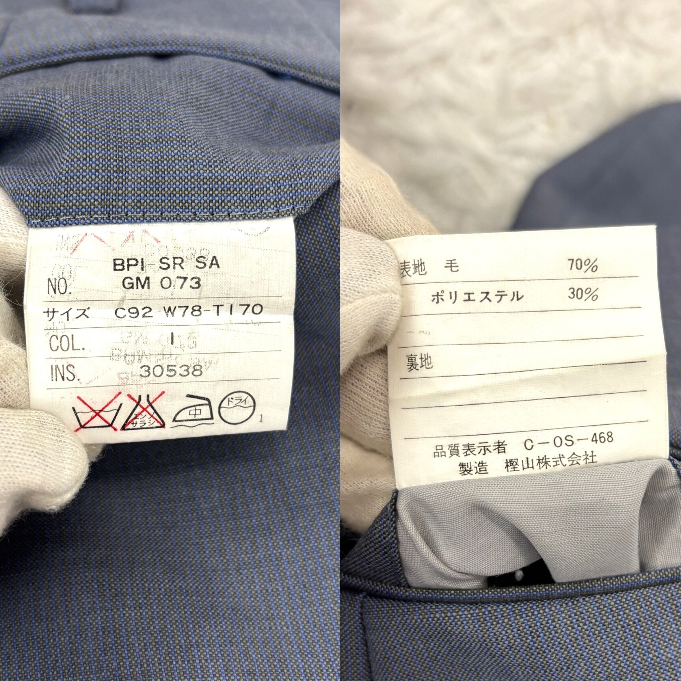 表地はウール70×ポリエステル30・裏地には高級スーツに使われるキュプラ混にYSLロゴを採用。