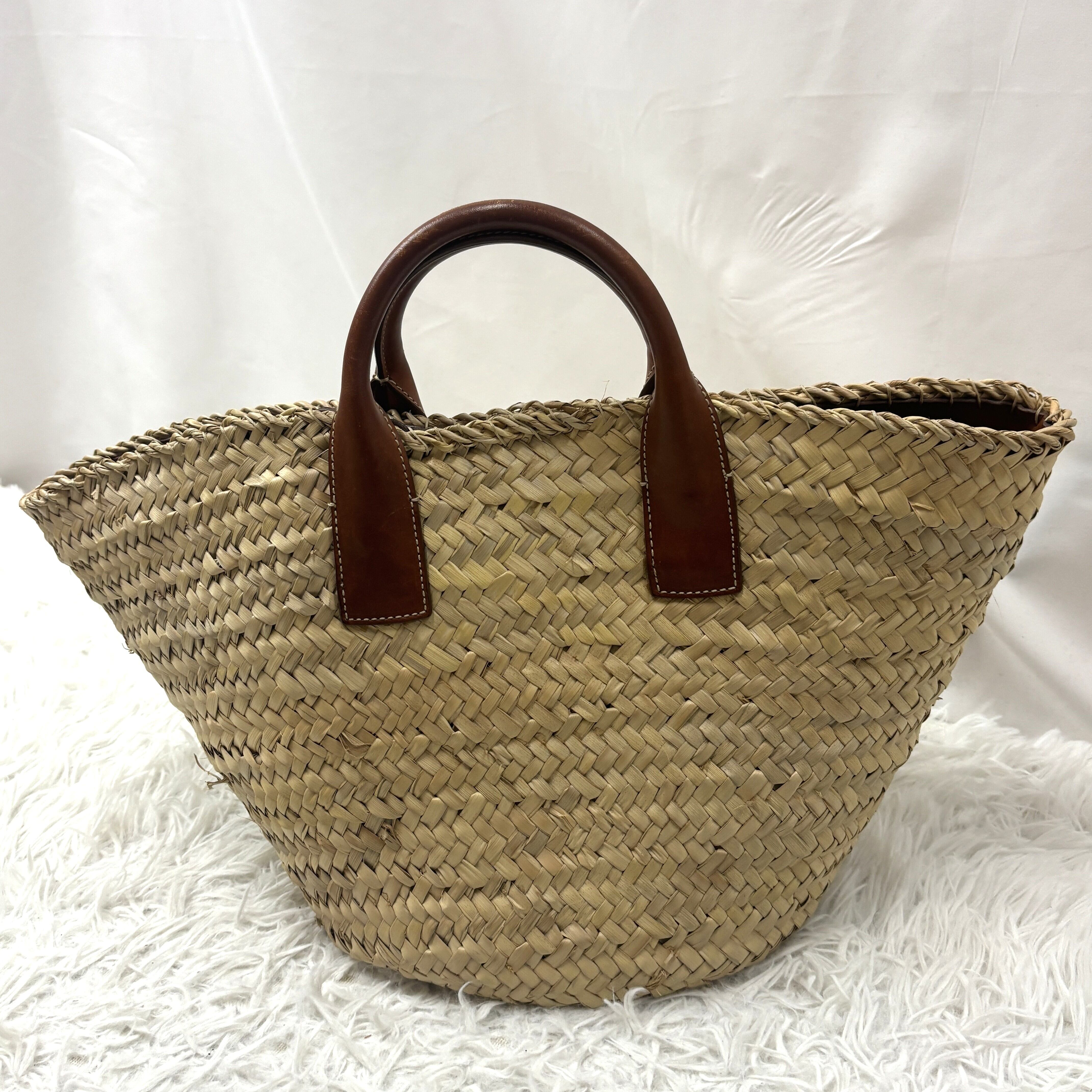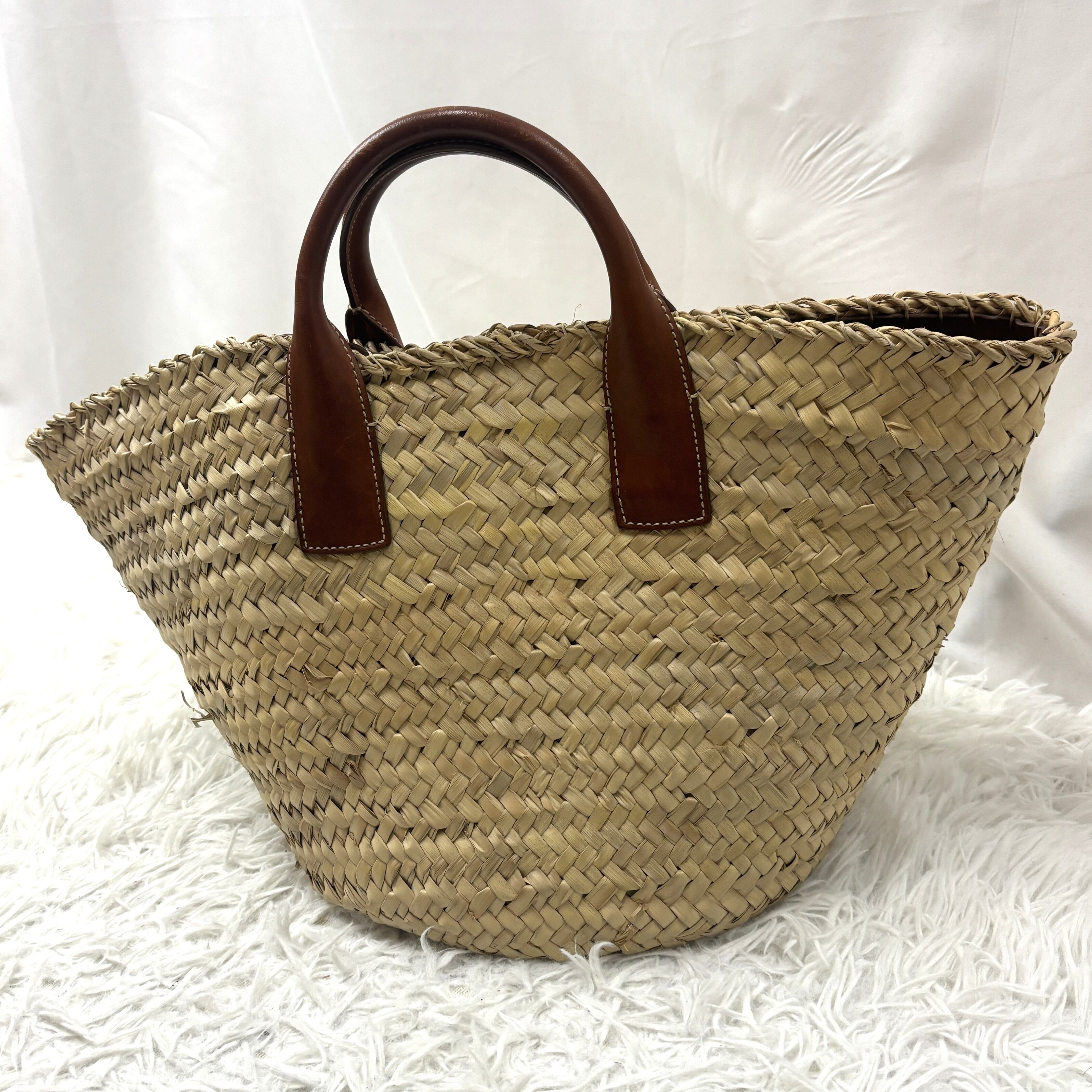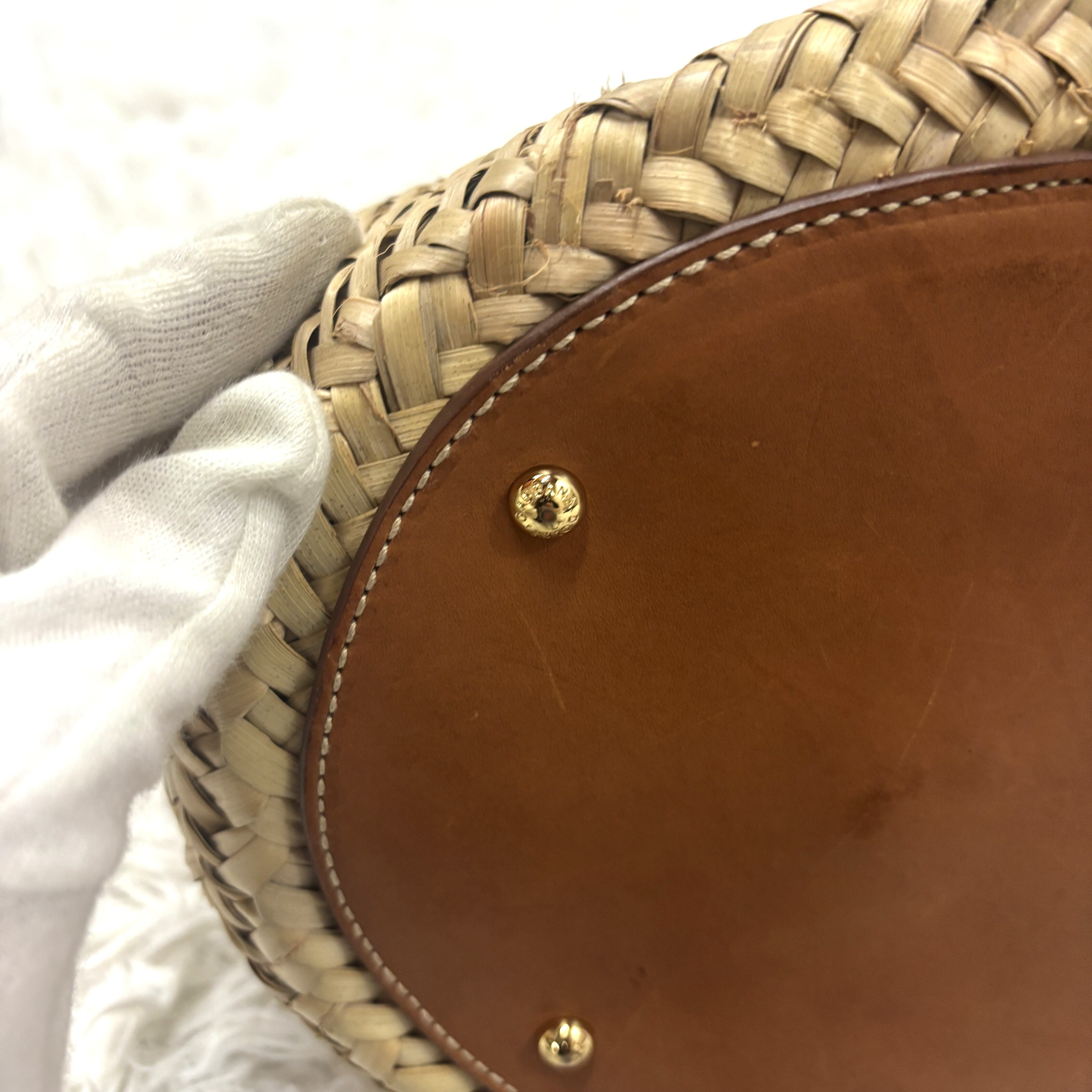 ブラウンレザーハンドルは手馴染みが良く、夏のワンピースやデニムスタイルにも映える季節の主役バッグ。