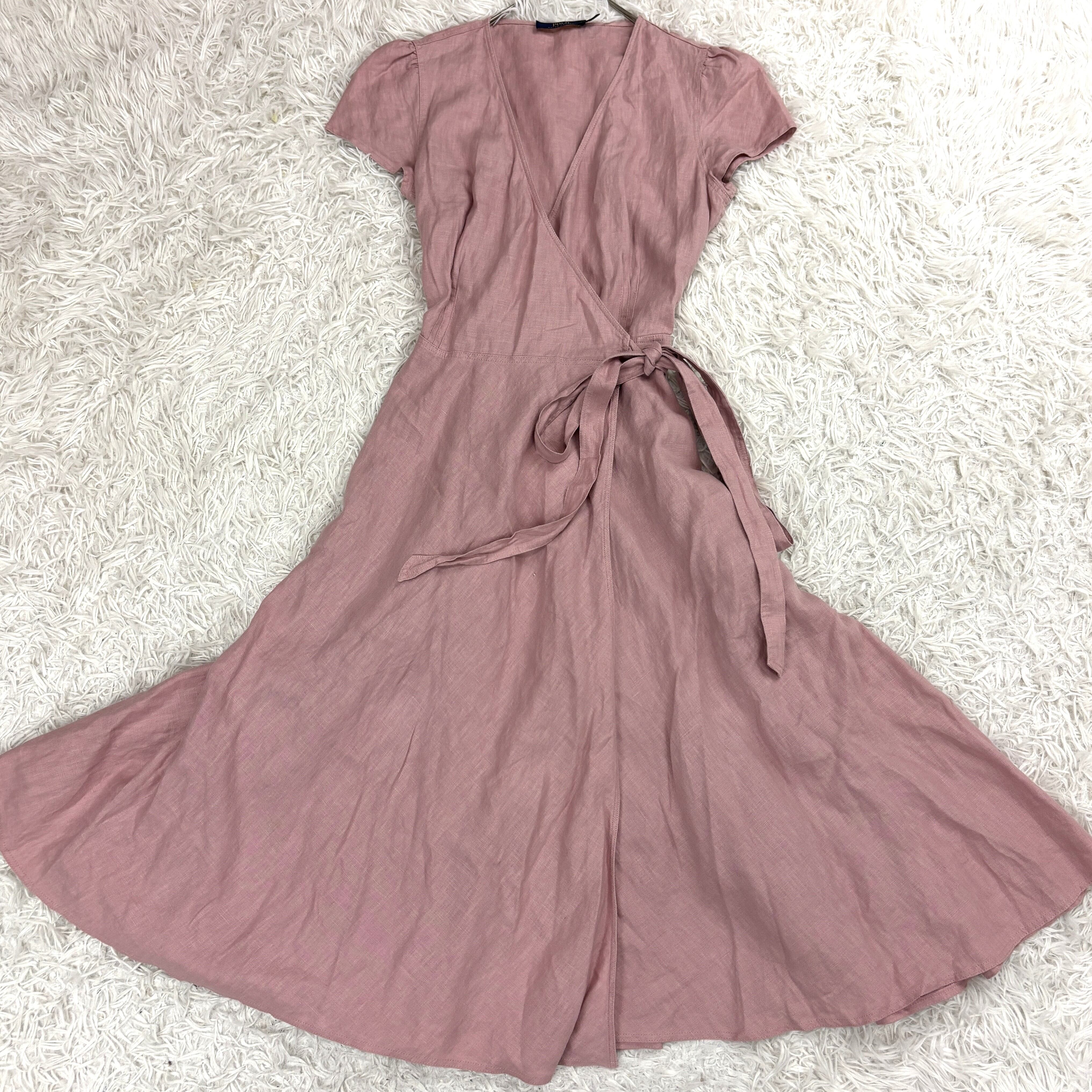 ポロラルフローレン リネン ラップドレス カシュクール ロング丈 フレア XS