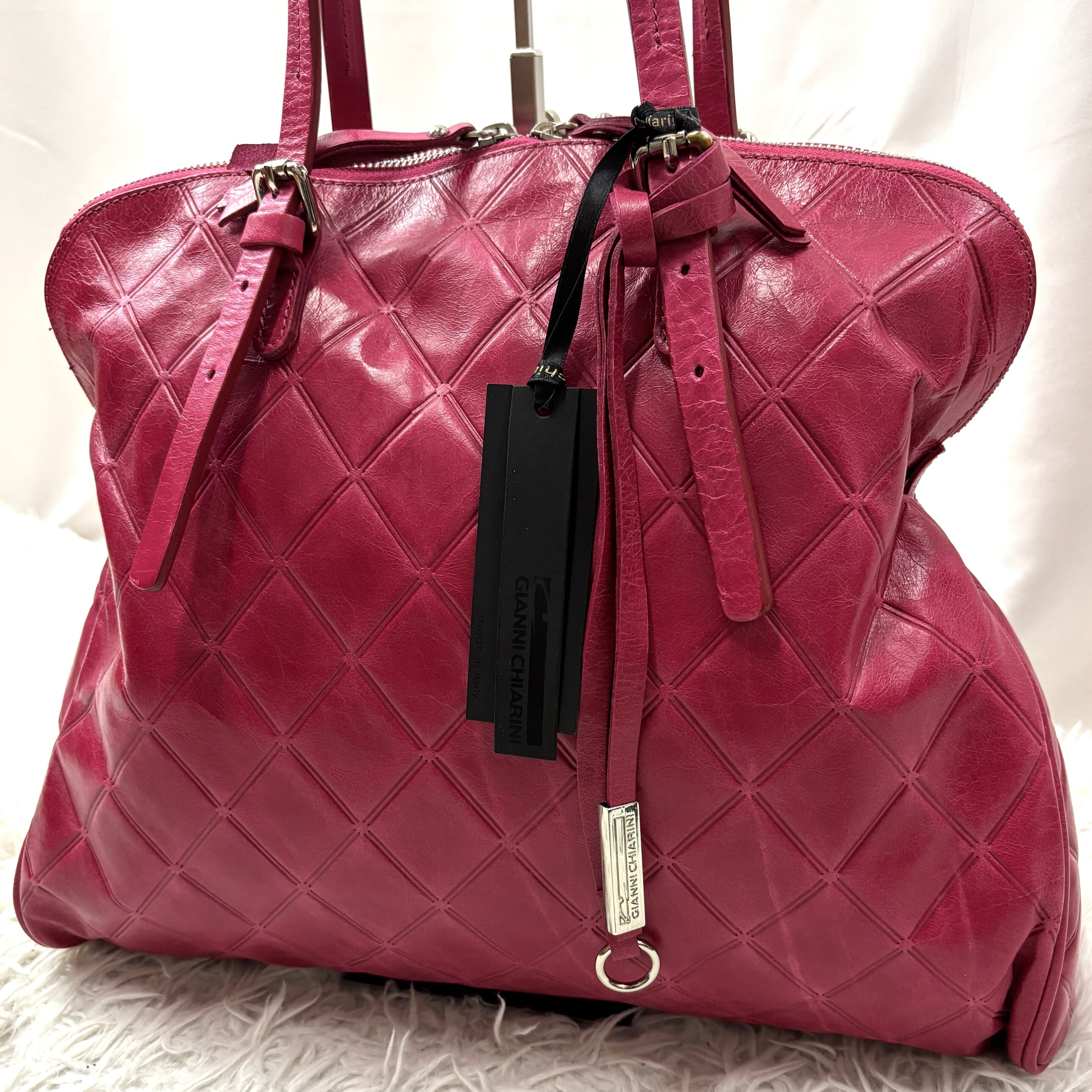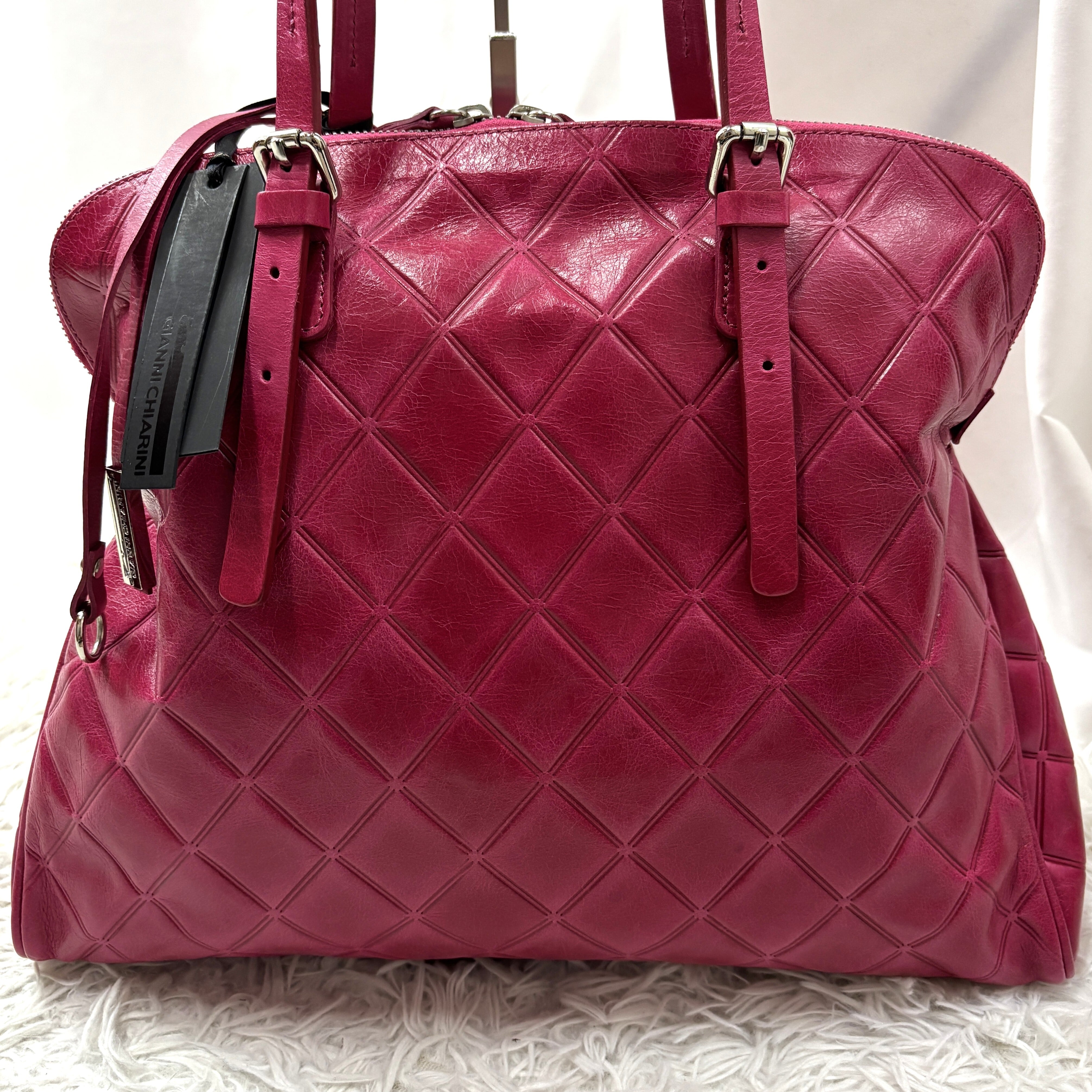 ジャンニキアリーニ レザー キルティング タグ付き ハンドバッグ ダスティピンク