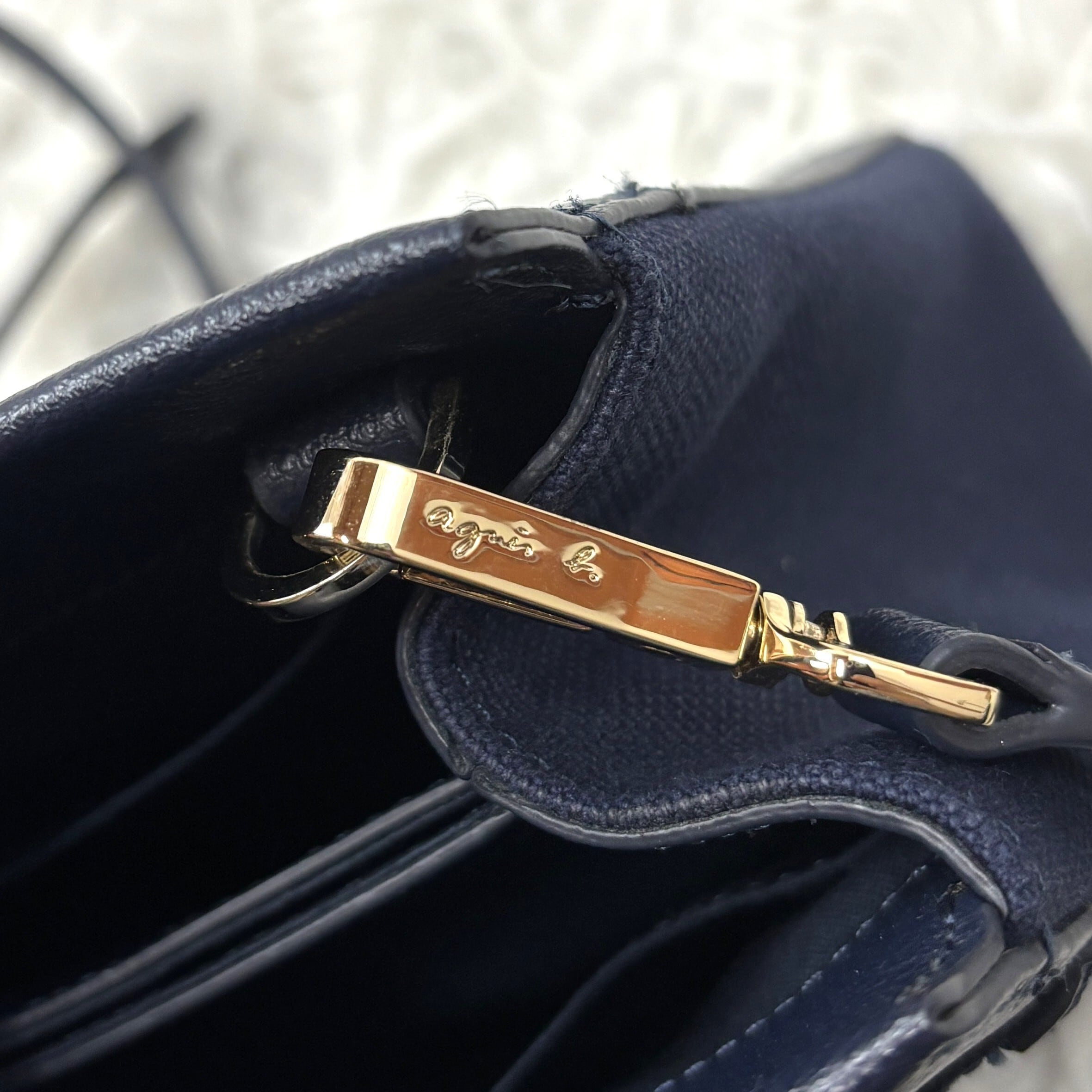 アニエスベー 紺 ロゴ金具チャーム付 ショルダーバッグ ミニトート 2Way