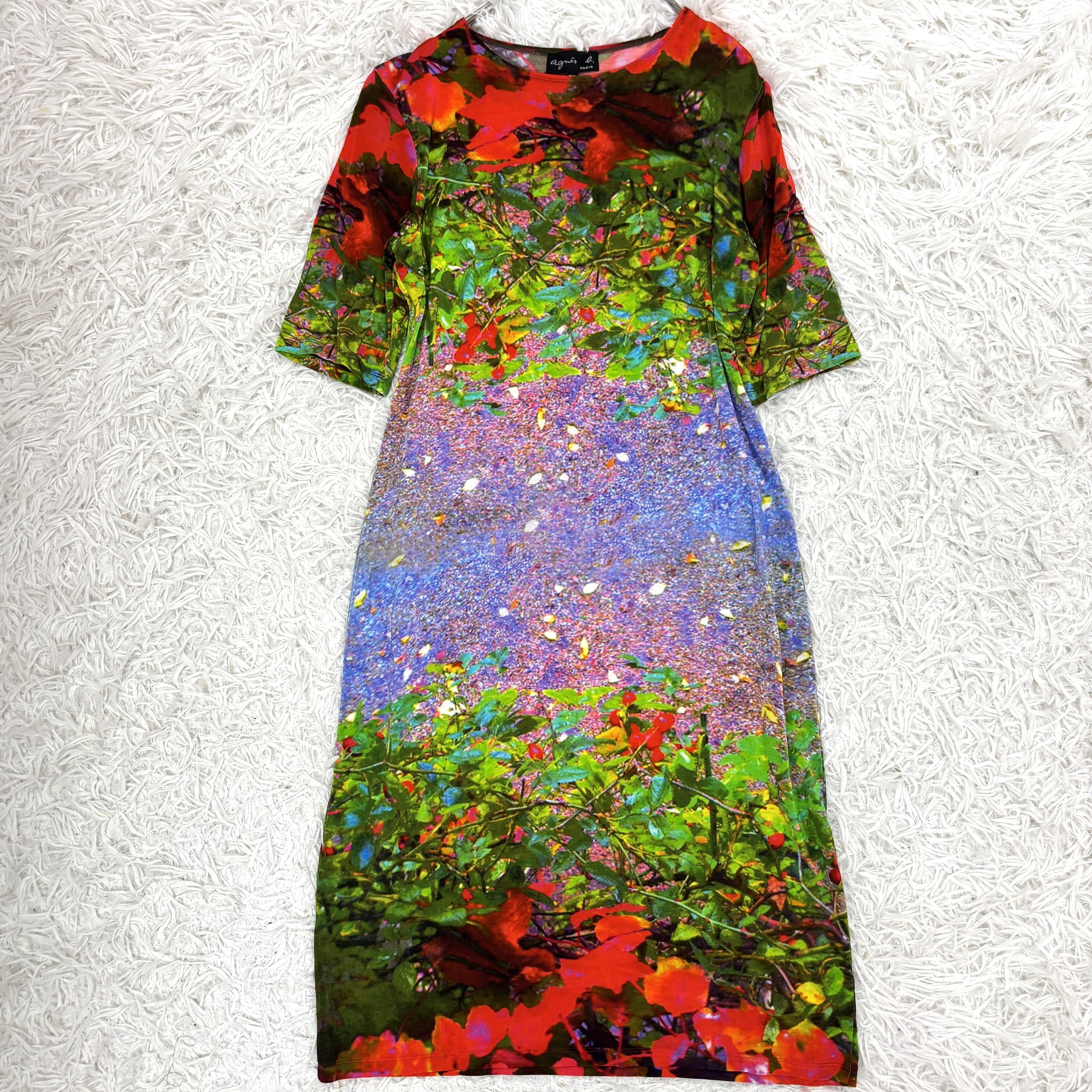 ☆希少☆ アニエスベー カラフル アート 総柄 半袖ワンピース レーヨン M