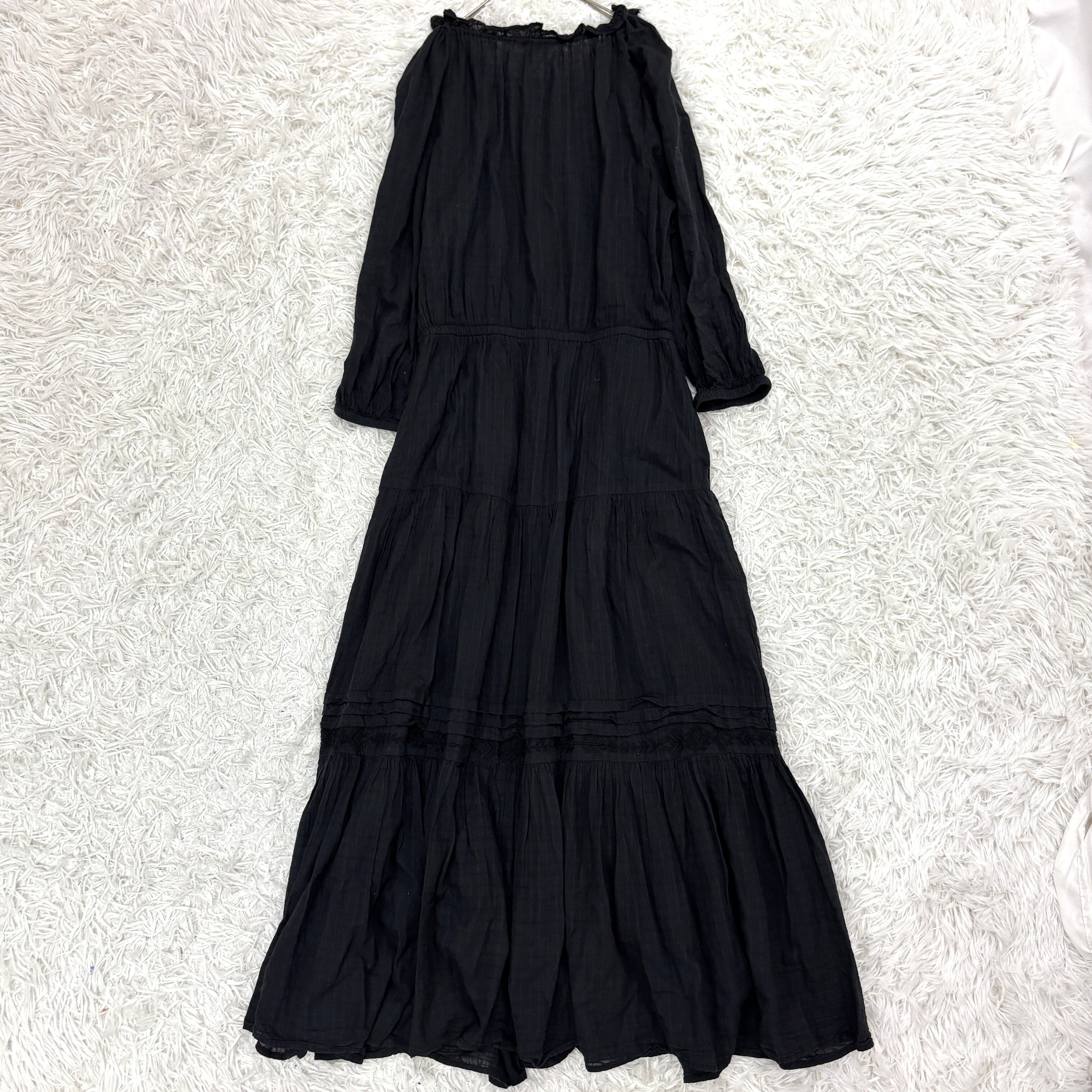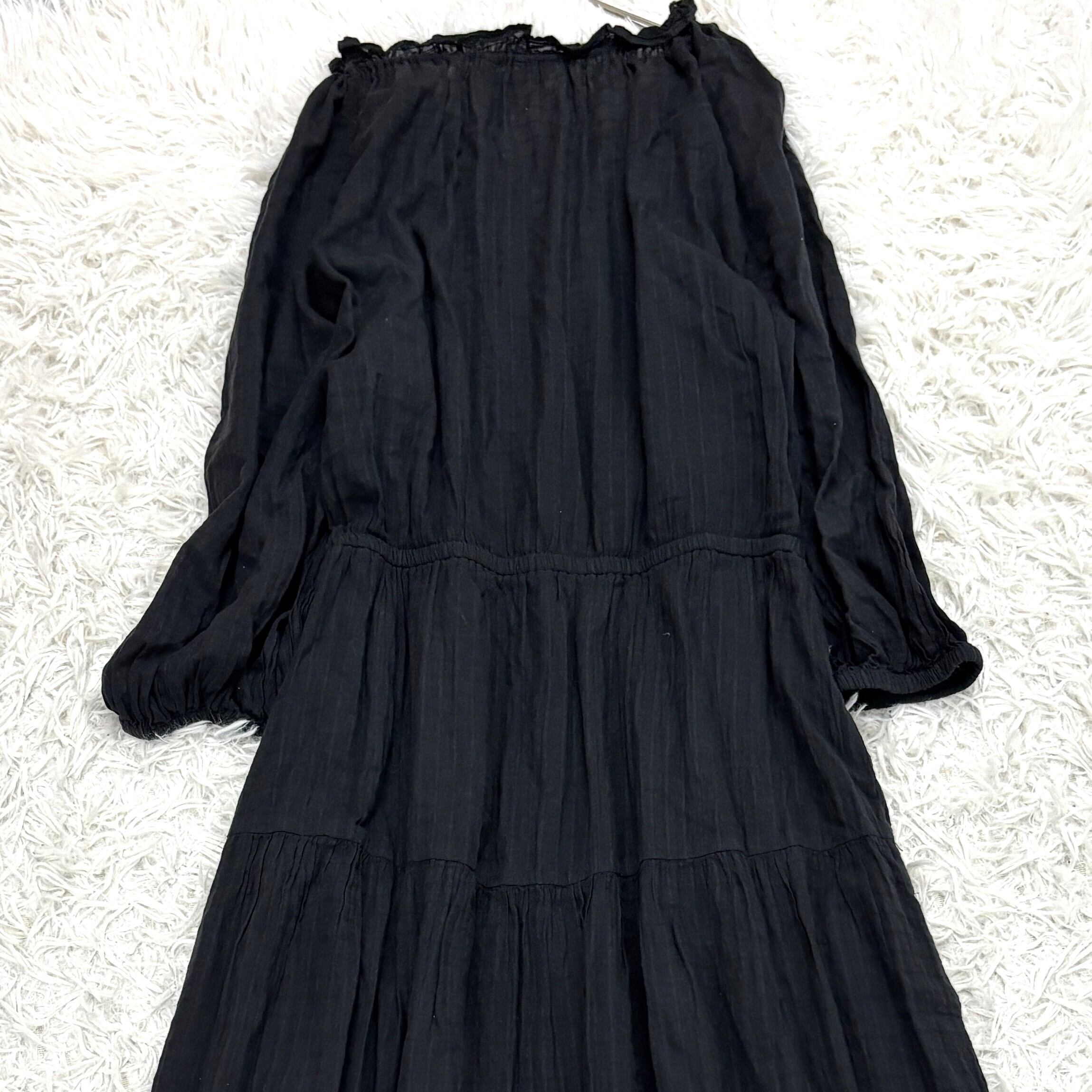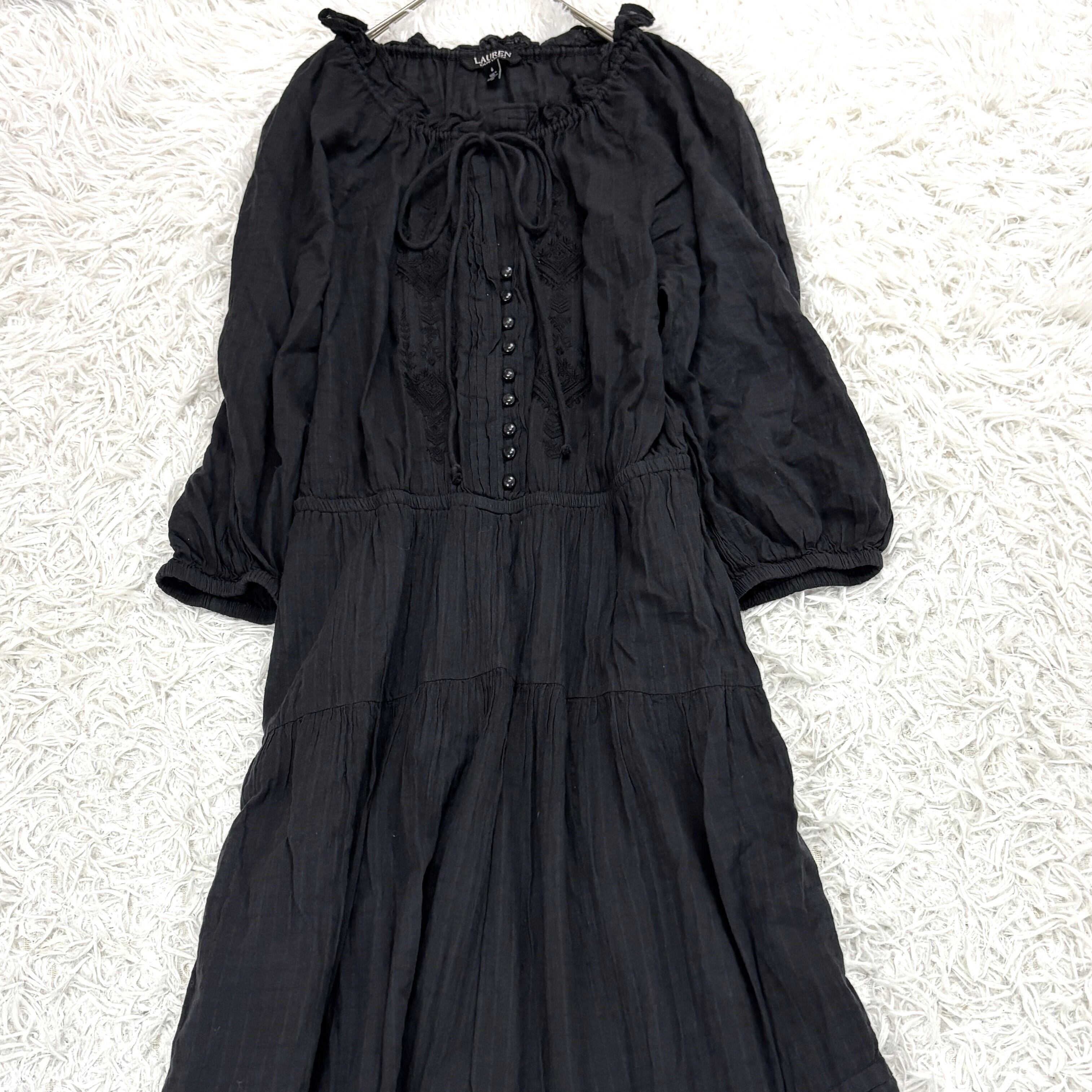 ローレンラルフローレン 黒 ロングワンピース ティアード ドレープ サイズ6