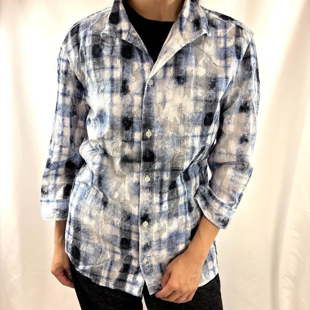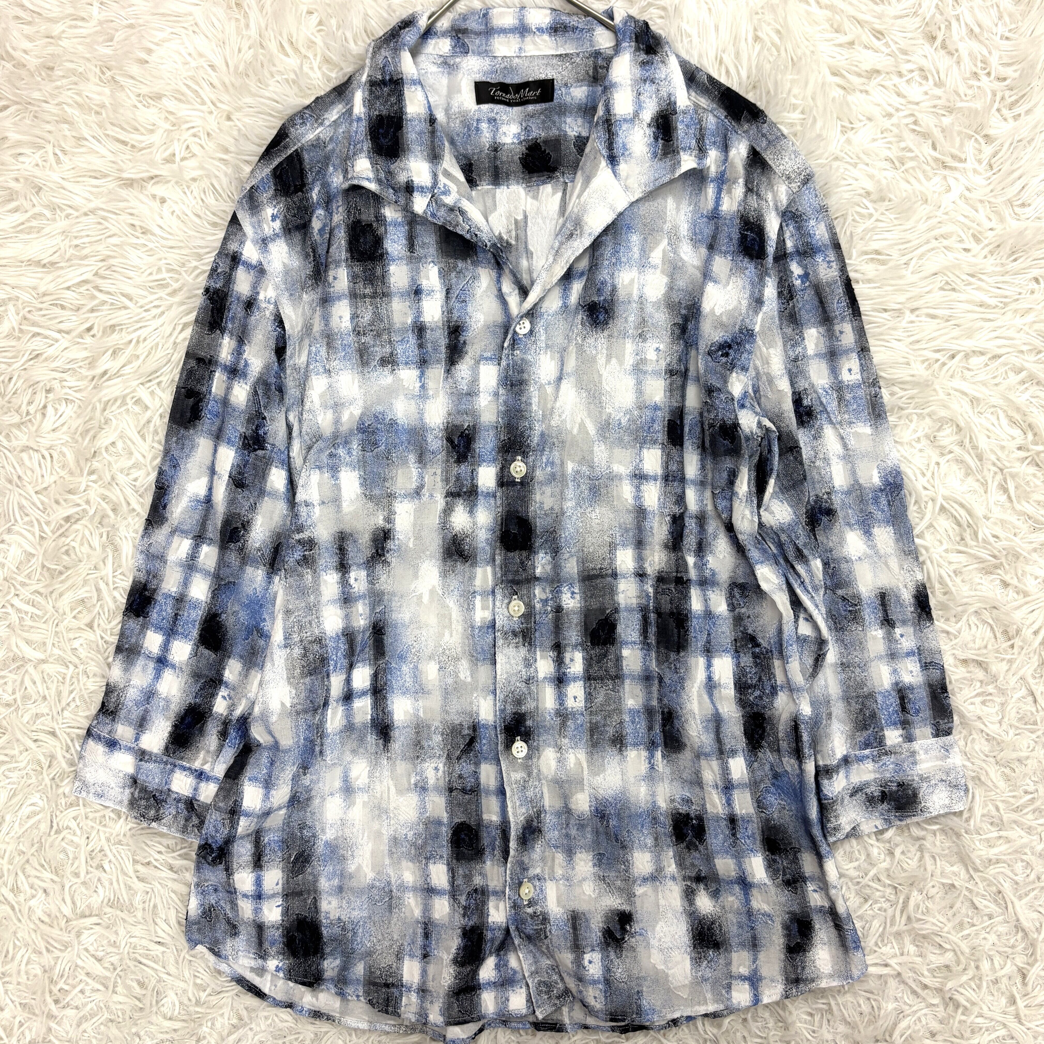 トルネードマート ダメージ加工 シワ加工 チェック柄 綿100% 長袖シャツ L